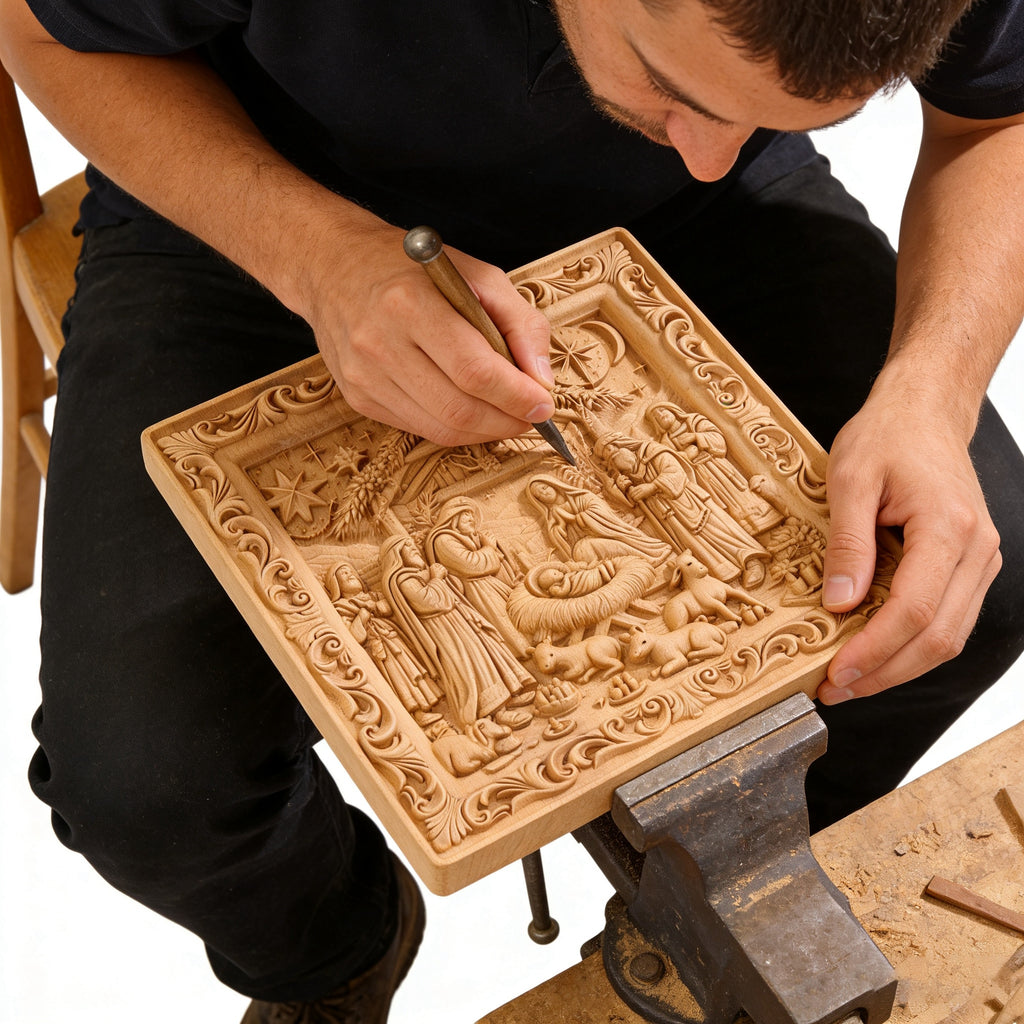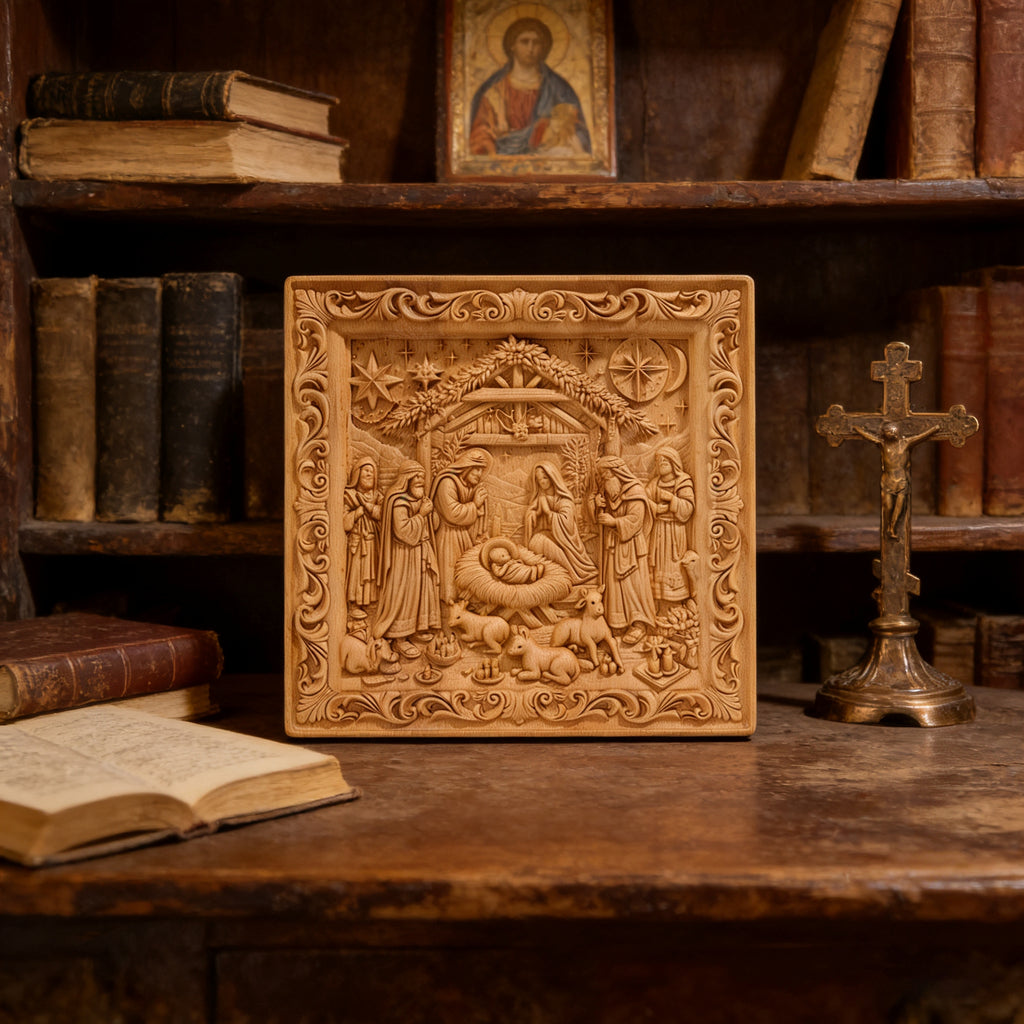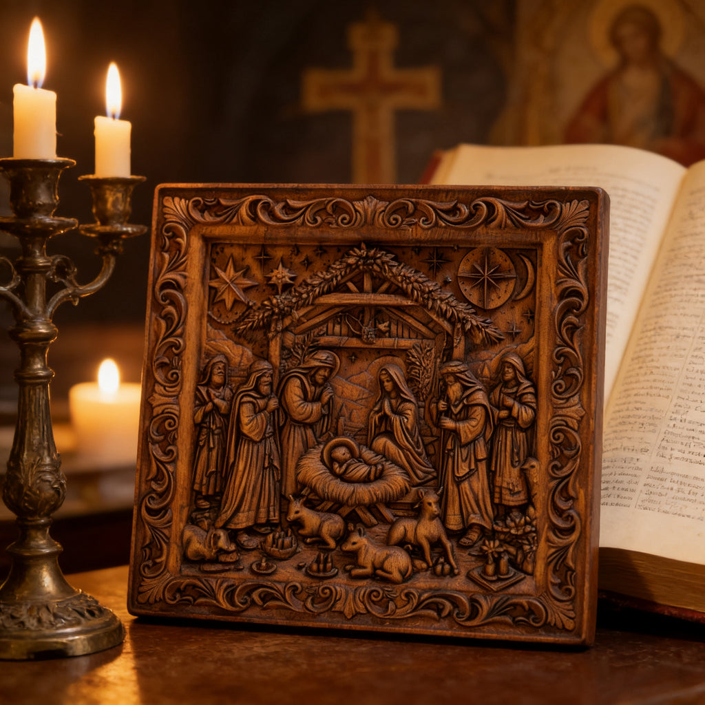 Handcarved Beechwood Nativity Scene Relief: Let Christmas’ Quiet Truth Settle in Your Home