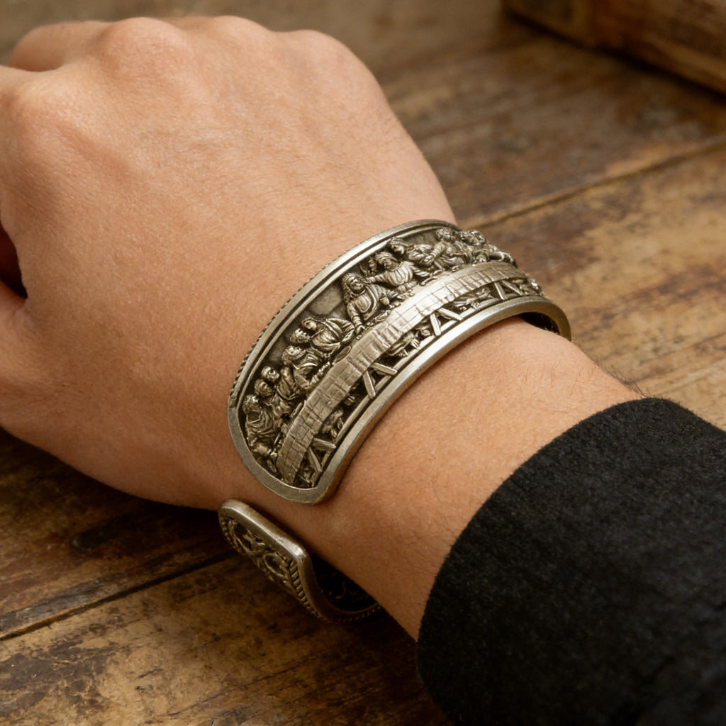 The Last Supper Faith Engraved Band Bracelet For Men bracelet is bold, beautifully crafted, and unique for men of faith.