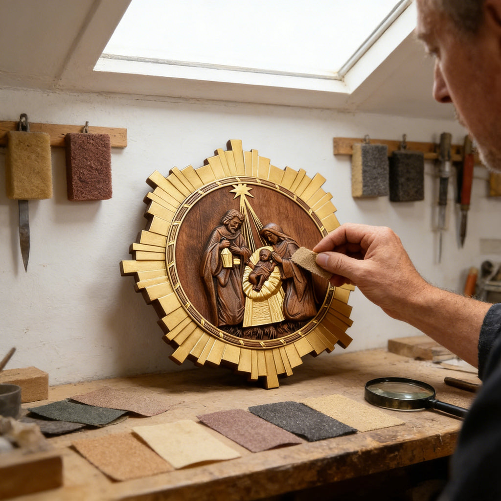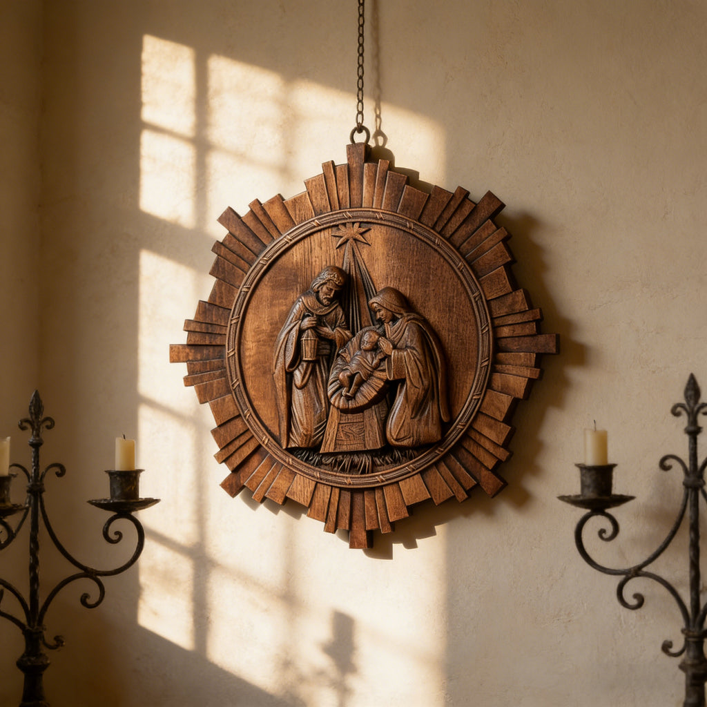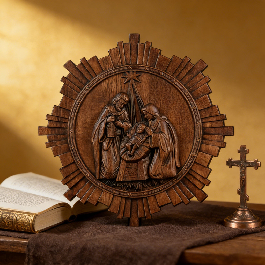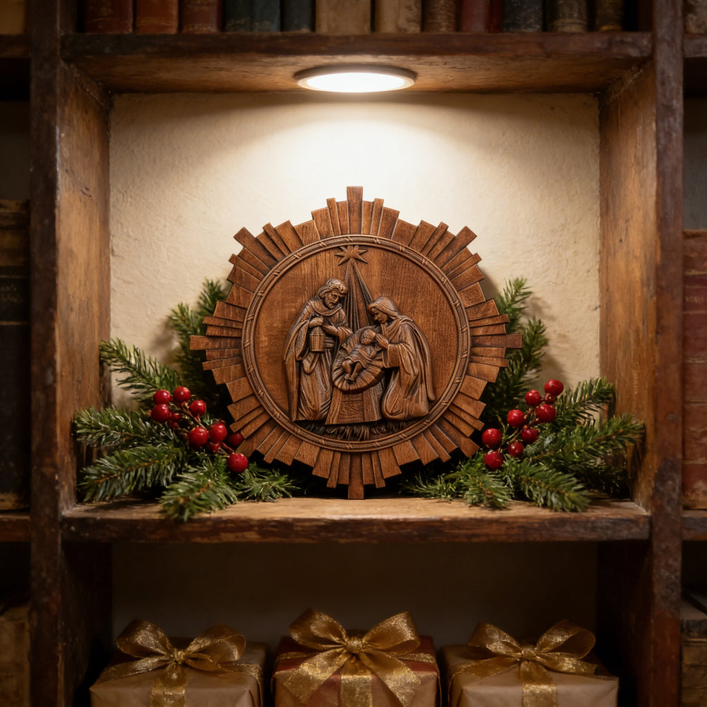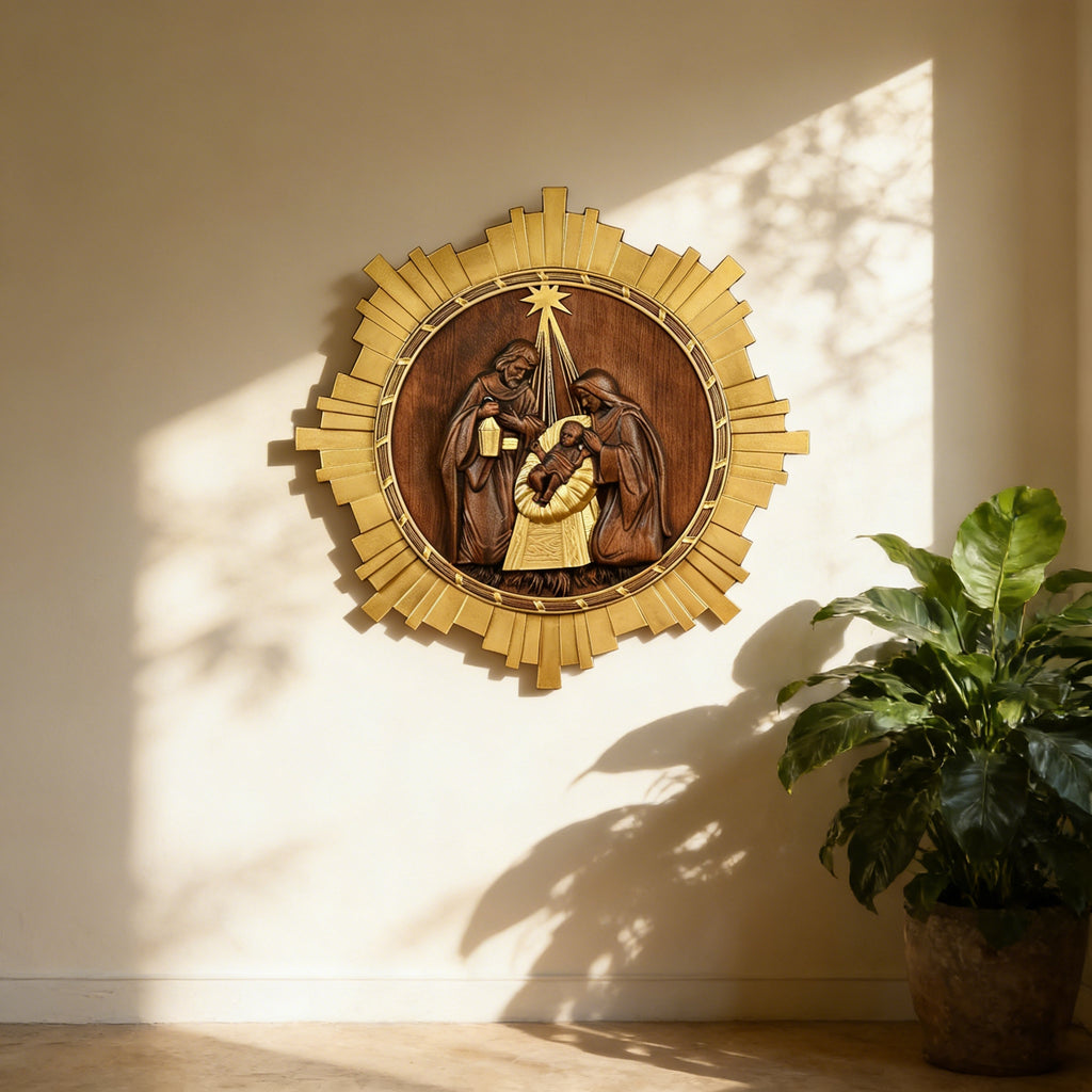 In a world that often turns Christmas into a commercial rush, this hand-carved wall art brings us back to the heart of the season: the birth of Jesus—God made flesh (John 1:14). Crafted from warm beechwood with glowing gold accents, it’s a timeless tribute to the “婴孩 who is King.”
