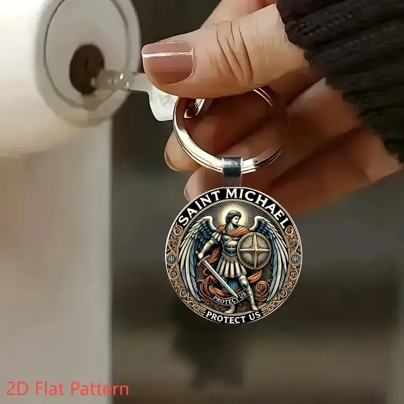 Saint Michael Defender Glass Keychain: Carry His Protection in Your Pocket