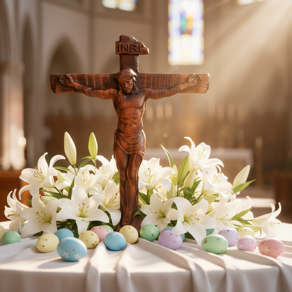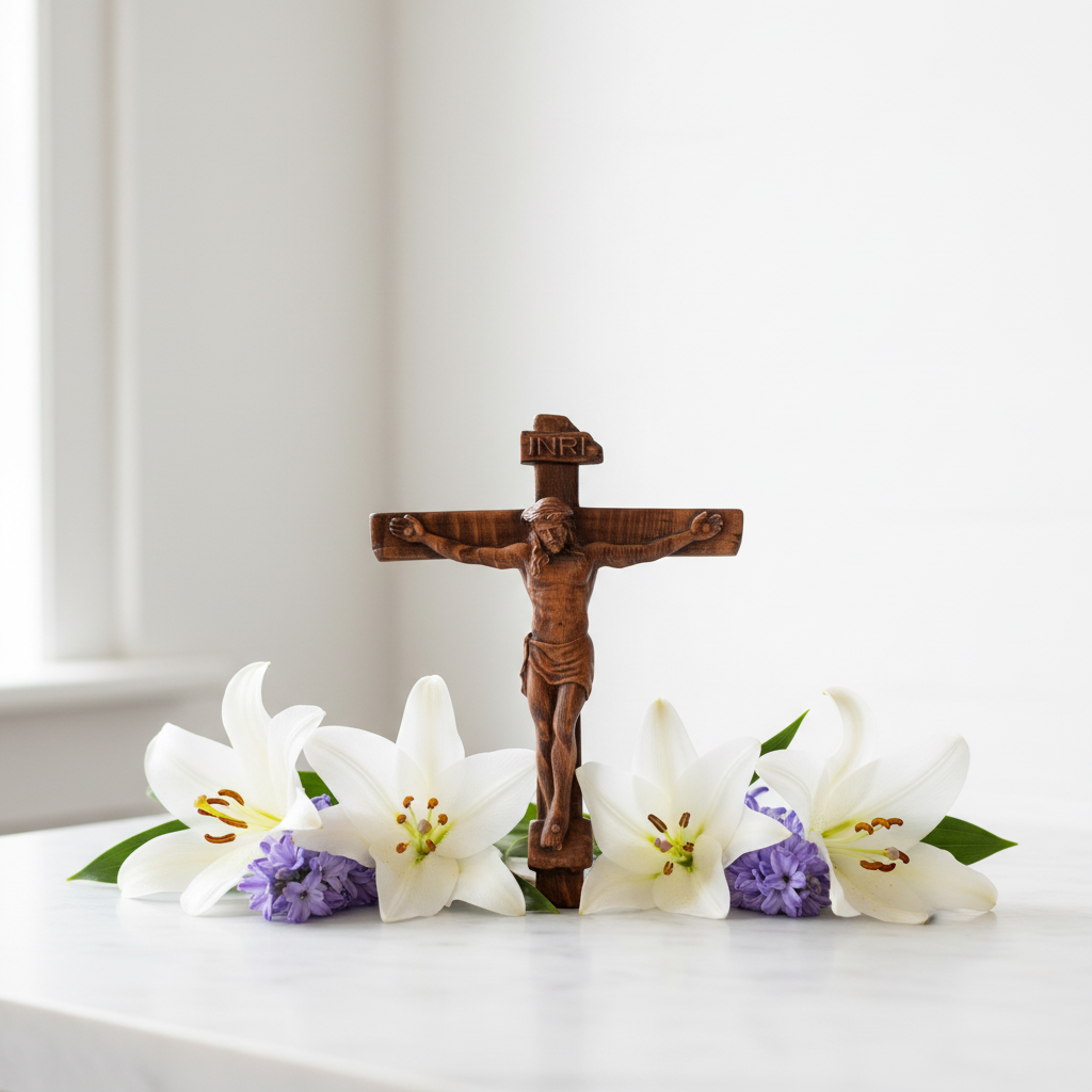Each crucifix is meticulously hand-carved from a single piece of solid wood by skilled artisans. The surface is carefully hand-polished, revealing a textured finish that tells a story of sacrifice and ultimate victory. The use of natural wood and water-based paint preserves the warmth of creation while honoring its purity.
