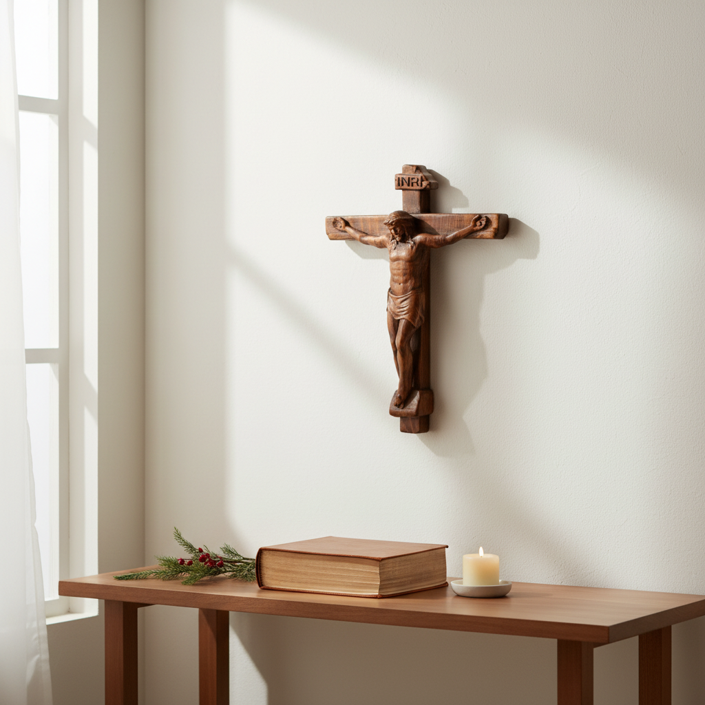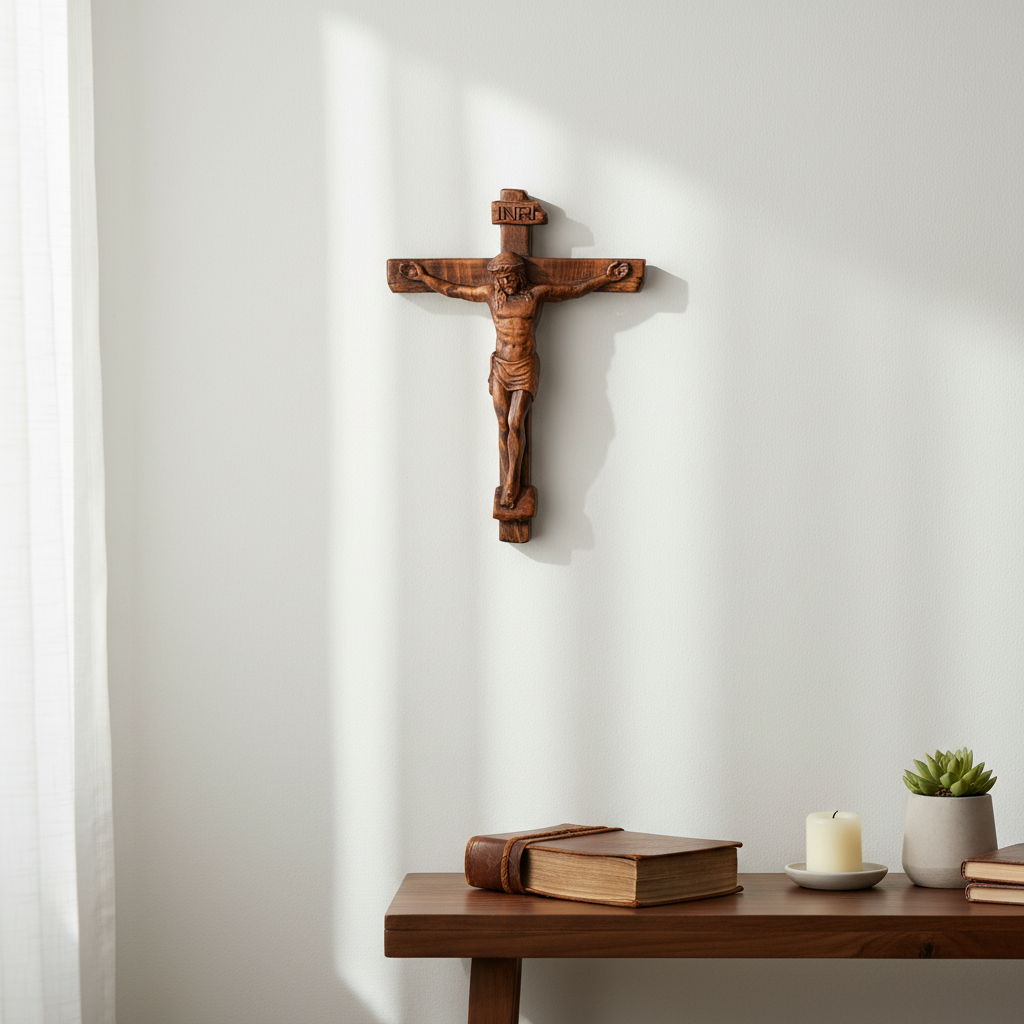 Sacred Art Crucifix: Devotionally Hand-Carved Solid Wood Cross, A Testament of Divine Love & Sacrifice