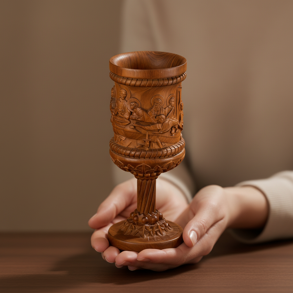 Boxwood "Last Supper" Chalice Hand-Carved Communion Cup | Eternal Symbol of Redemption & Fellowship
