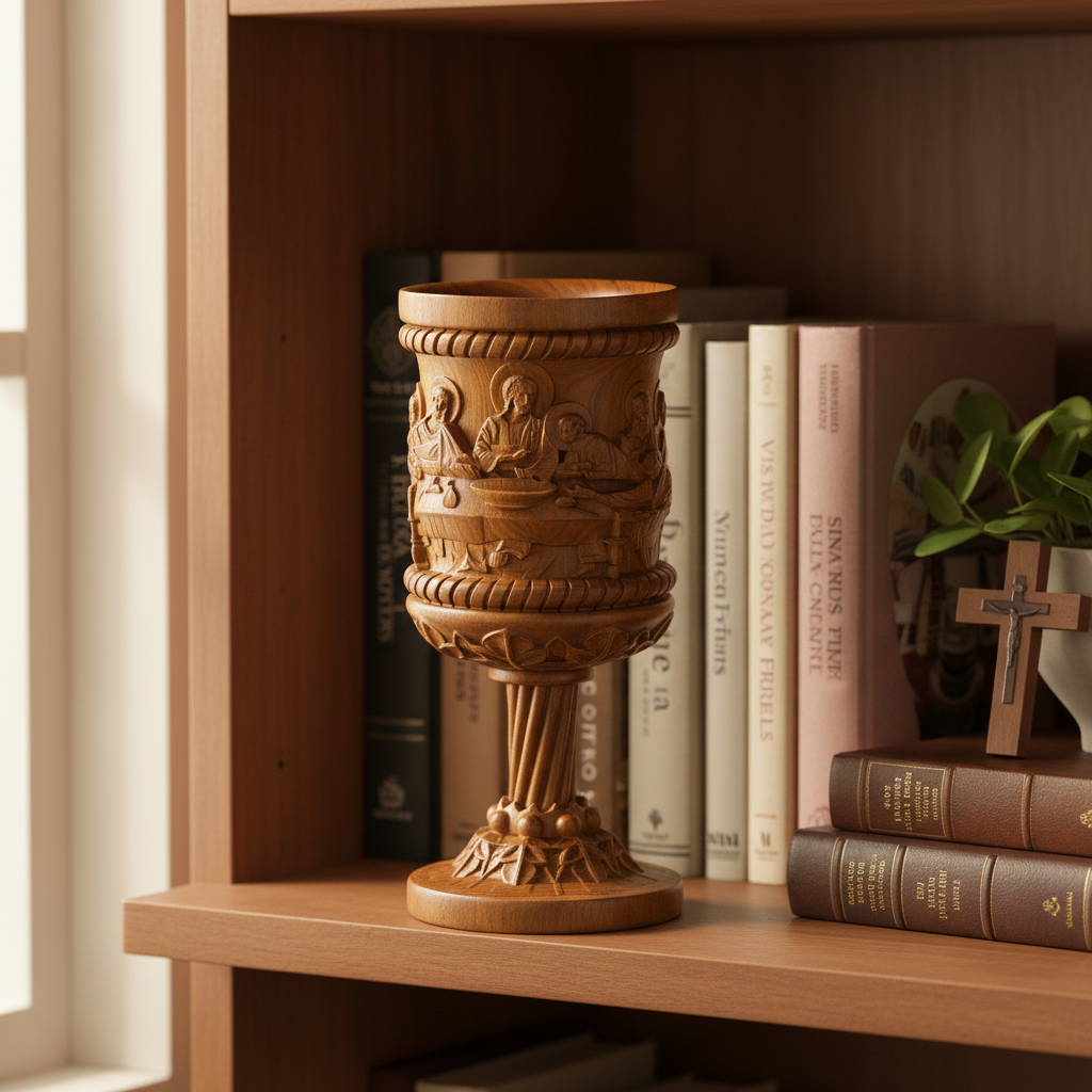 Crafted in prayerful reverence, this boxwood chalice transforms the words "This is my blood of the covenant" from sacred text to tactile reality—a tangible connection to the night that changed history.