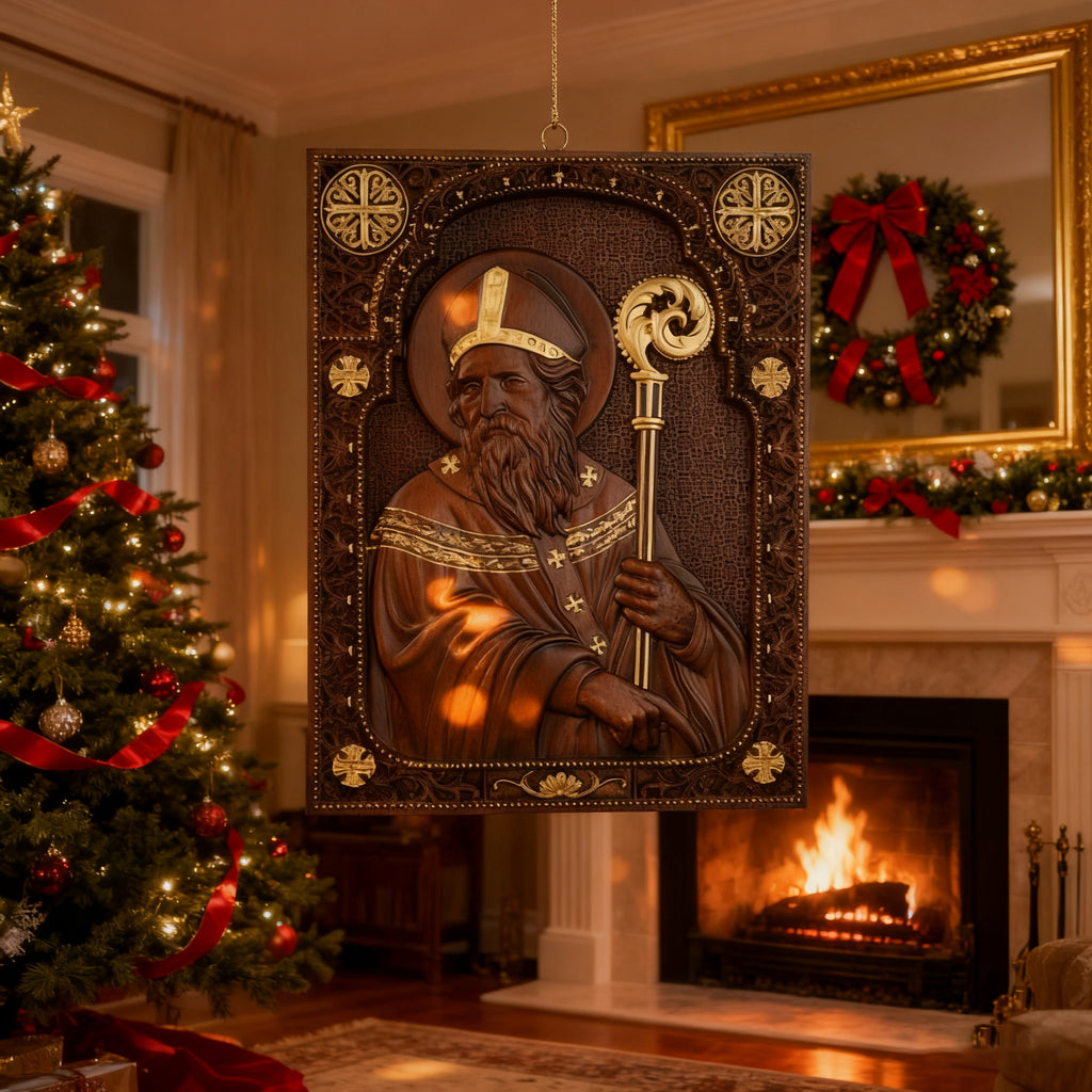 Bgcopper Saint Patrick Wood Carved Icon Religious Gift Wall Hanging Art Work