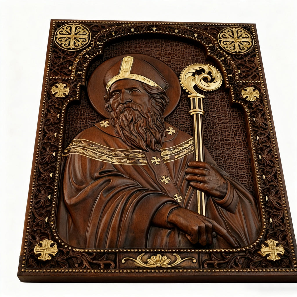This exquisite St. Patrick wooden icon beautifully blends ancient faith with masterful artistry, bringing sacred blessings to your home or worship space. Each piece is lovingly hand-carved by devoted artisans, infusing every detail with spiritual significance.