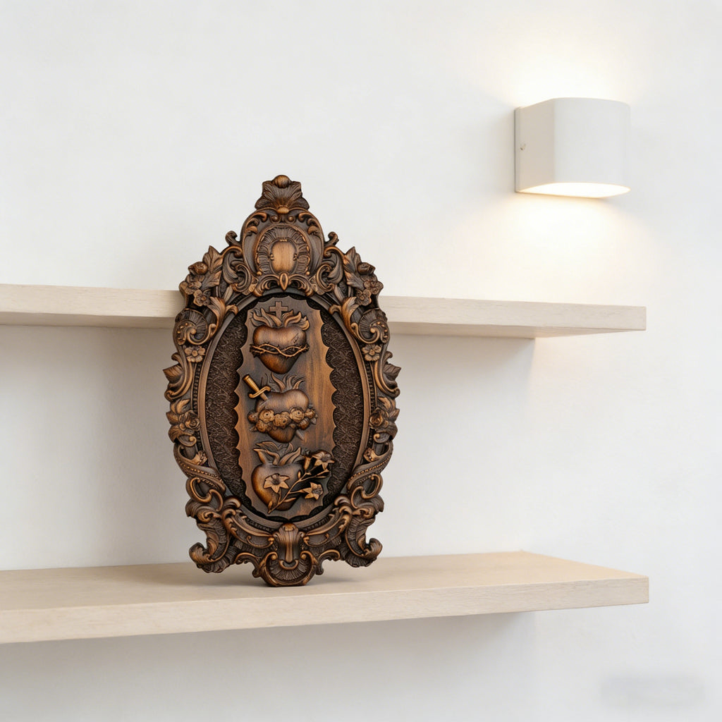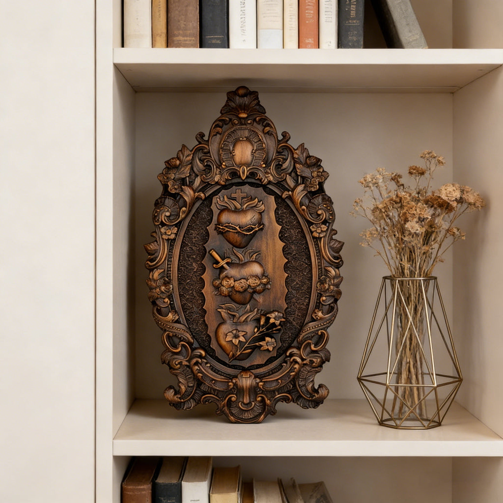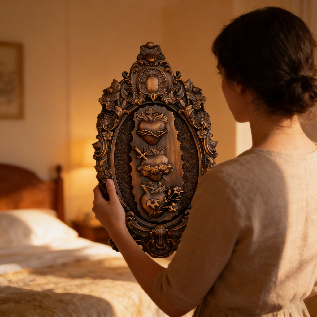 Place it in your prayer corner or family altar — let its quiet presence speak where words fall short. As morning light touches the carving, may it echo softly: “Faith lives here. Grace abides here.”