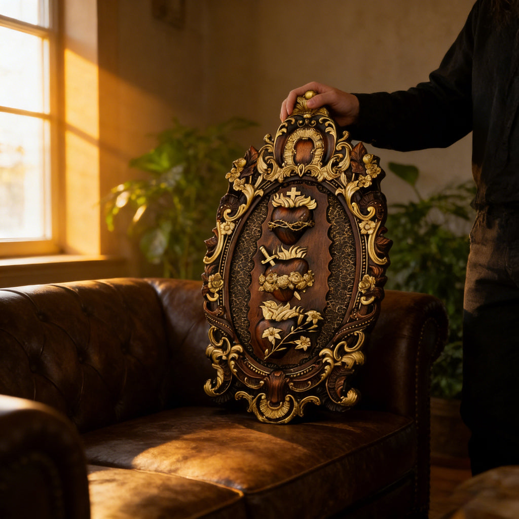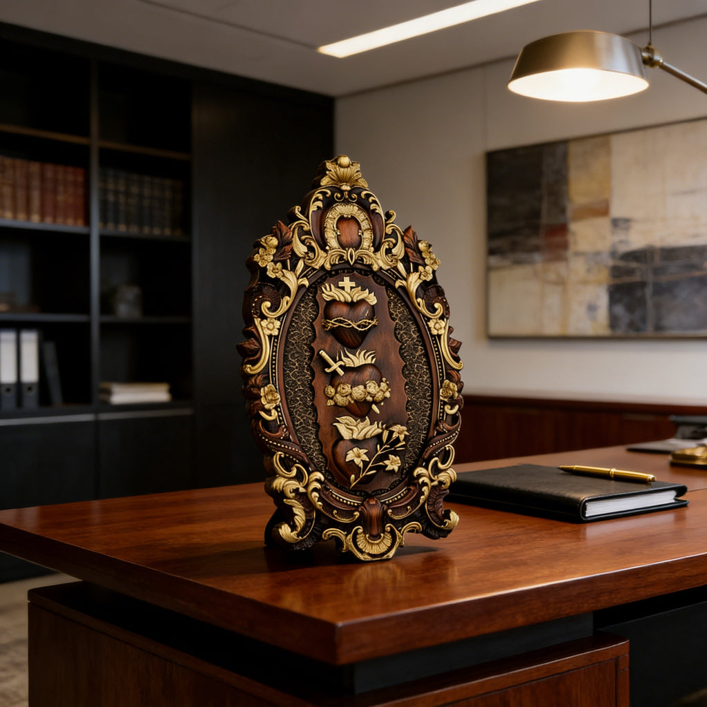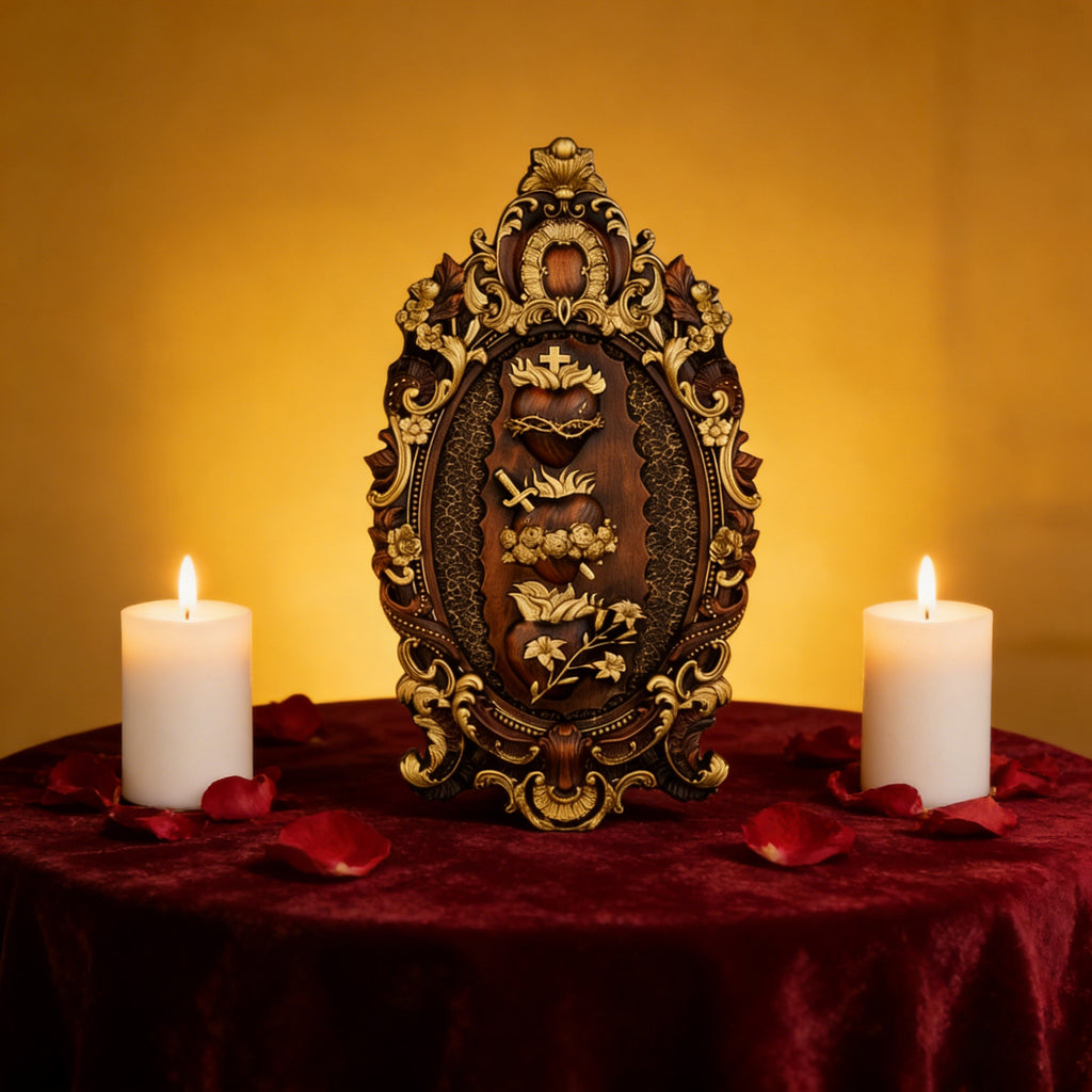Place it in your prayer corner or family altar — let its quiet presence speak where words fall short. As morning light touches the carving, may it echo softly: “Faith lives here. Grace abides here.”