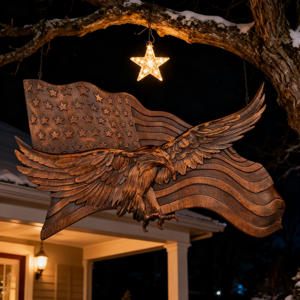 Eagle & Flag Wood Wall Plaque - Handcrafted American Heritage Tribute