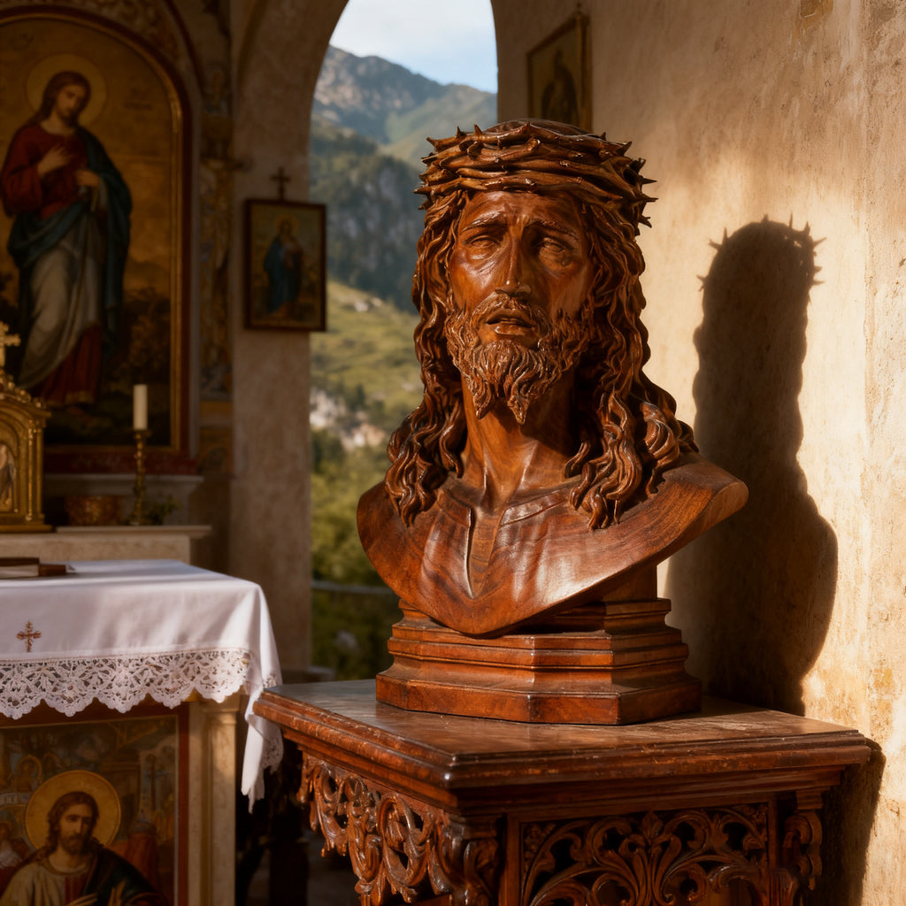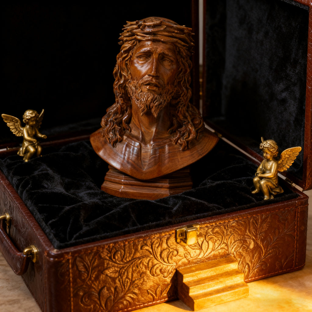 When soldiers pressed the crown of thorns upon Jesus' head, those sharp points pierced more than flesh—they bore the weight of our sins. 🙏 This hand-carved boxwood sculpture captures His compassionate sacrifice, making "His suffering for you" a tangible presence in your daily walk with Christ.