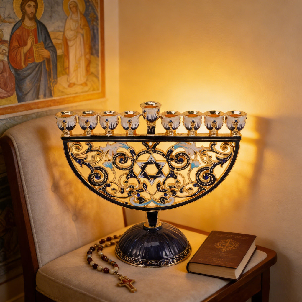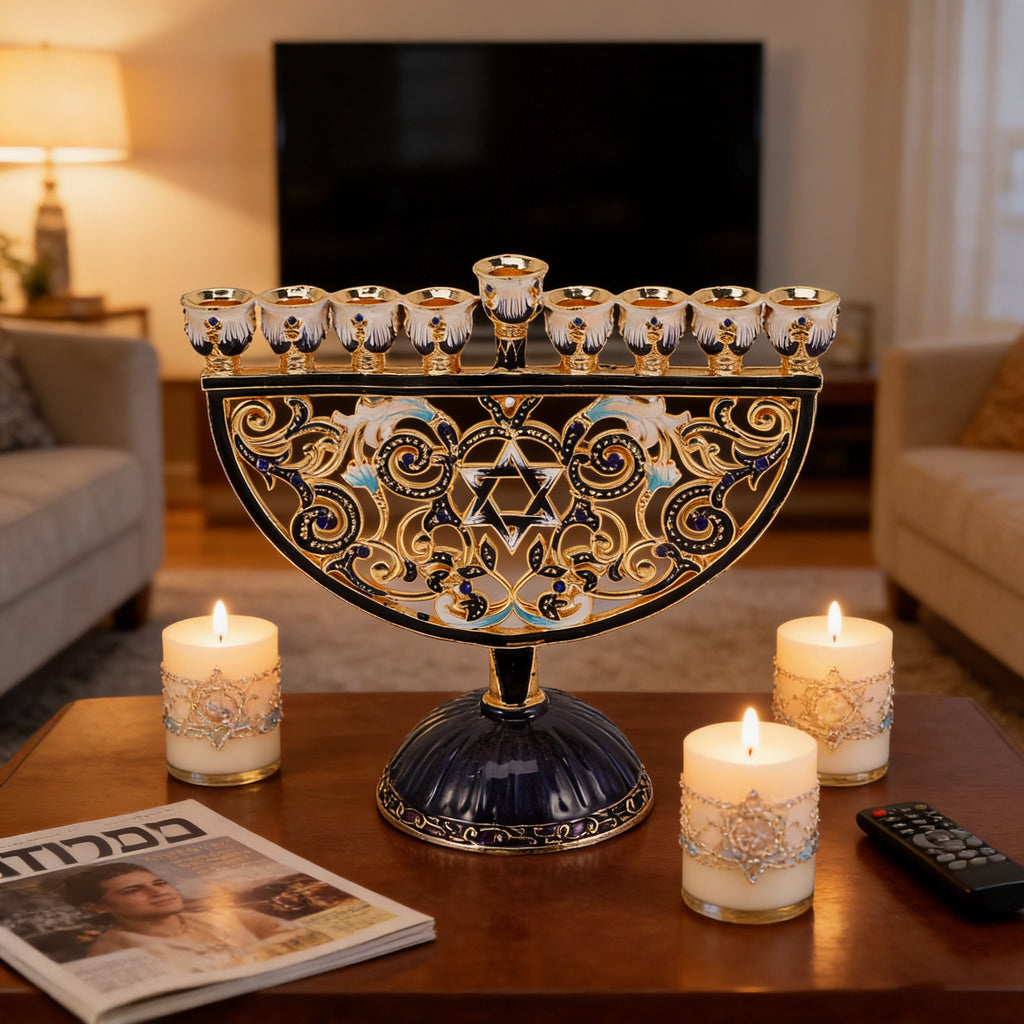 This Hand-Painted Enamel Menorah is more than an object; it is a storyteller, a teacher of heritage, and a vessel for sacred light. May it serve in your home as a beautiful bridge to the past, a center for joyous celebration in the present, and a legacy of faith for the future.