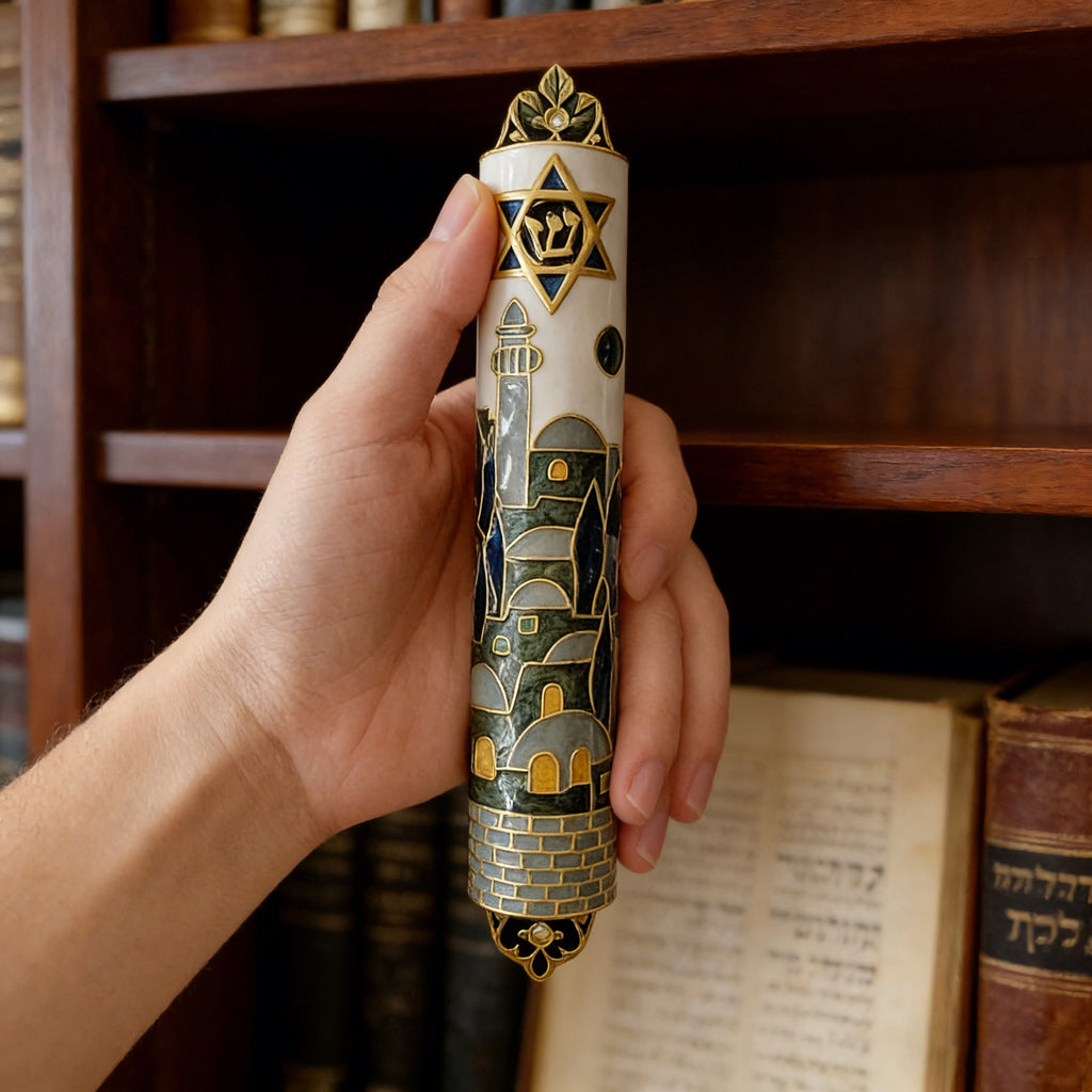 Hand-Painted Enamel Mezuzah: The Dual Essence of Faith & Craftsmanship