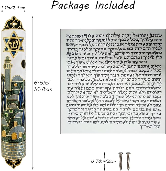 It comes with an authentic Hebrew Shema scroll (including Deuteronomy 6:4-9), treated for moisture resistance to preserve its clarity. This fulfills the Jewish tradition of "placing God’s words on your doorposts."