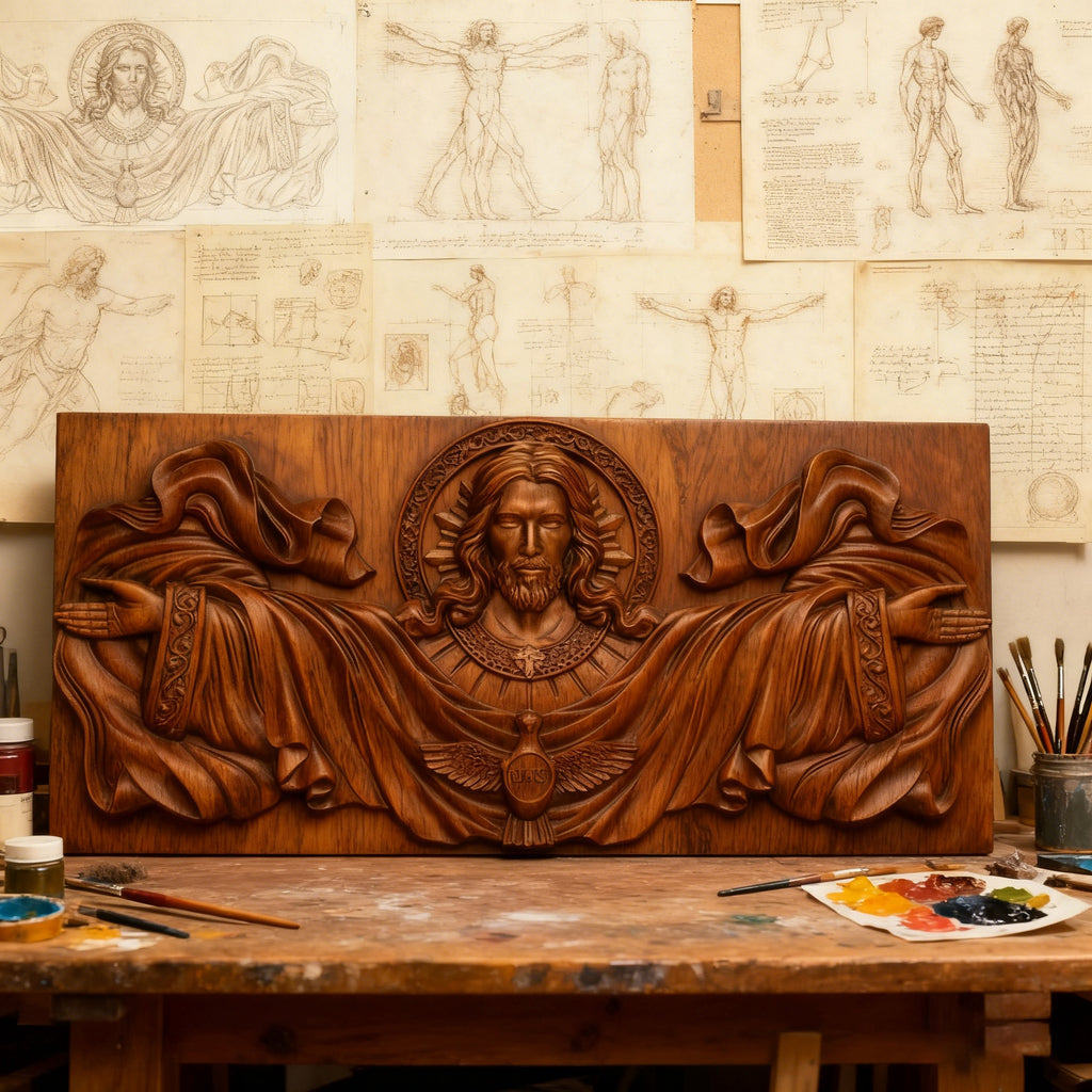 Celebrate the sacred mystery of the Trinity with the “Trinity of Grace” Hand-Carved Wood Wall Art – a masterpiece of faith, craftsmanship, and devotion that honors the Father, Son, and Holy Spirit in every detail.