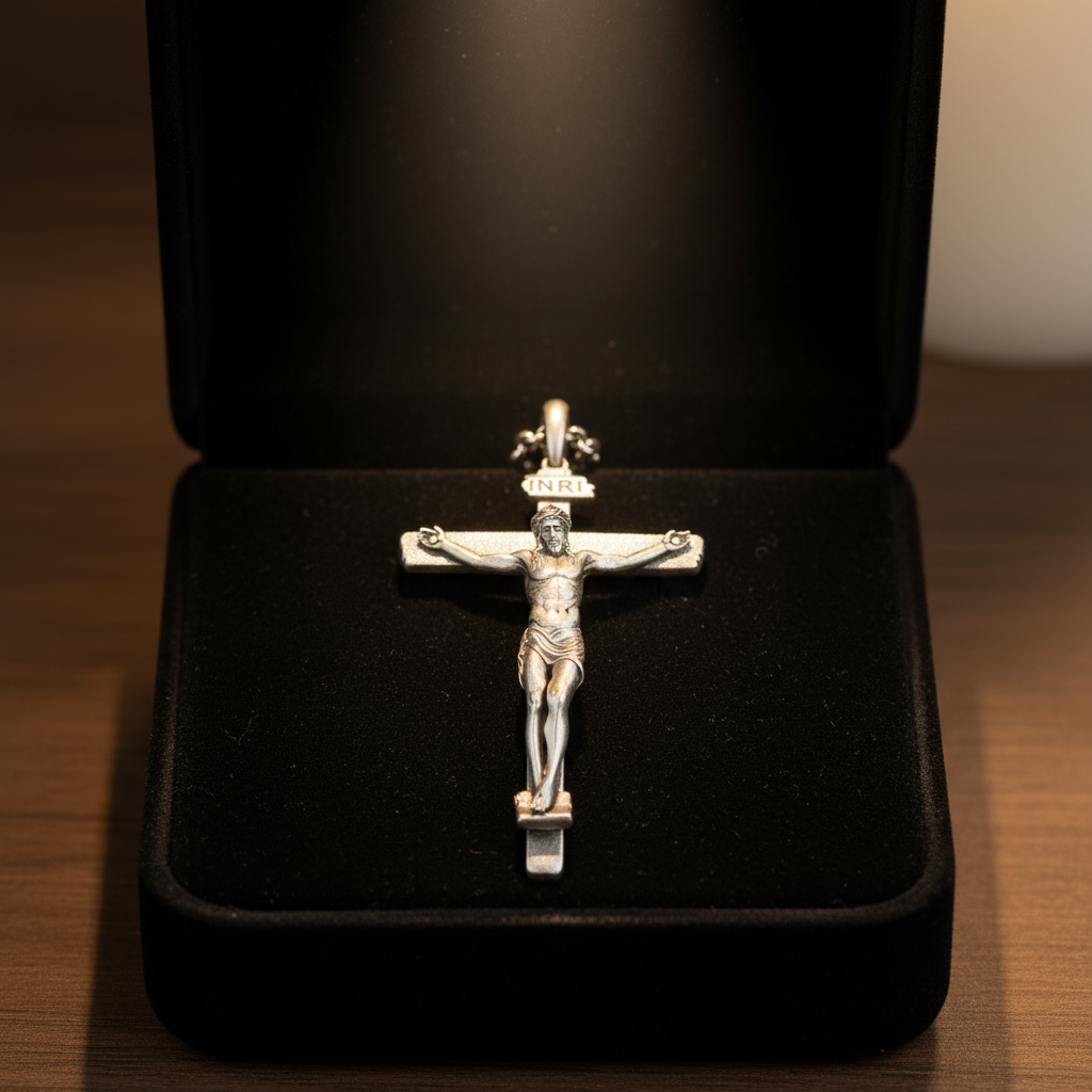 Soft matte finish and enduring silver make this cross suitable for daily wear—a tactile invitation to pause, breathe, and pray. Touch it in moments of doubt; let it remind you: “He is with you.” (1 Peter 5:7) In traffic, in meetings, in the quiet before sleep—this cross becomes a silent partner in your conversation with God. It does not demand attention; it offers presence.