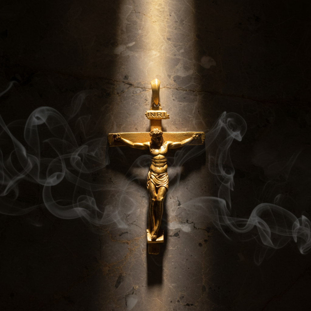 • INRI Inscription — “Jesus of Nazareth, King of the Jews.” What was meant as mockery becomes the eternal declaration of His reign over all things.