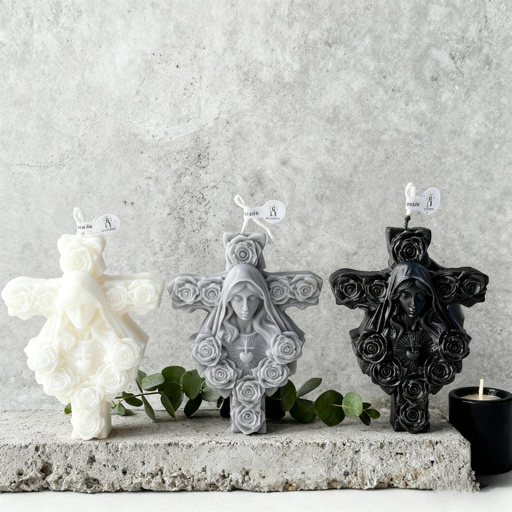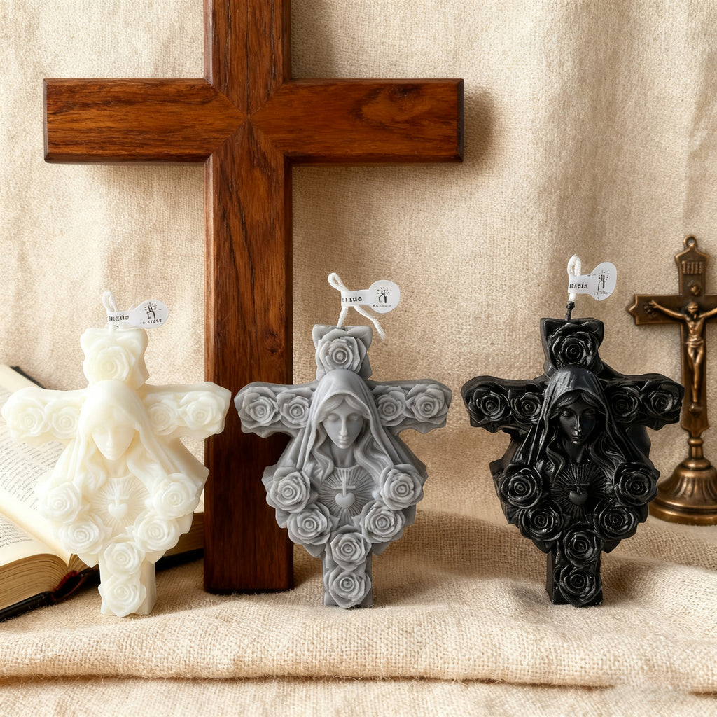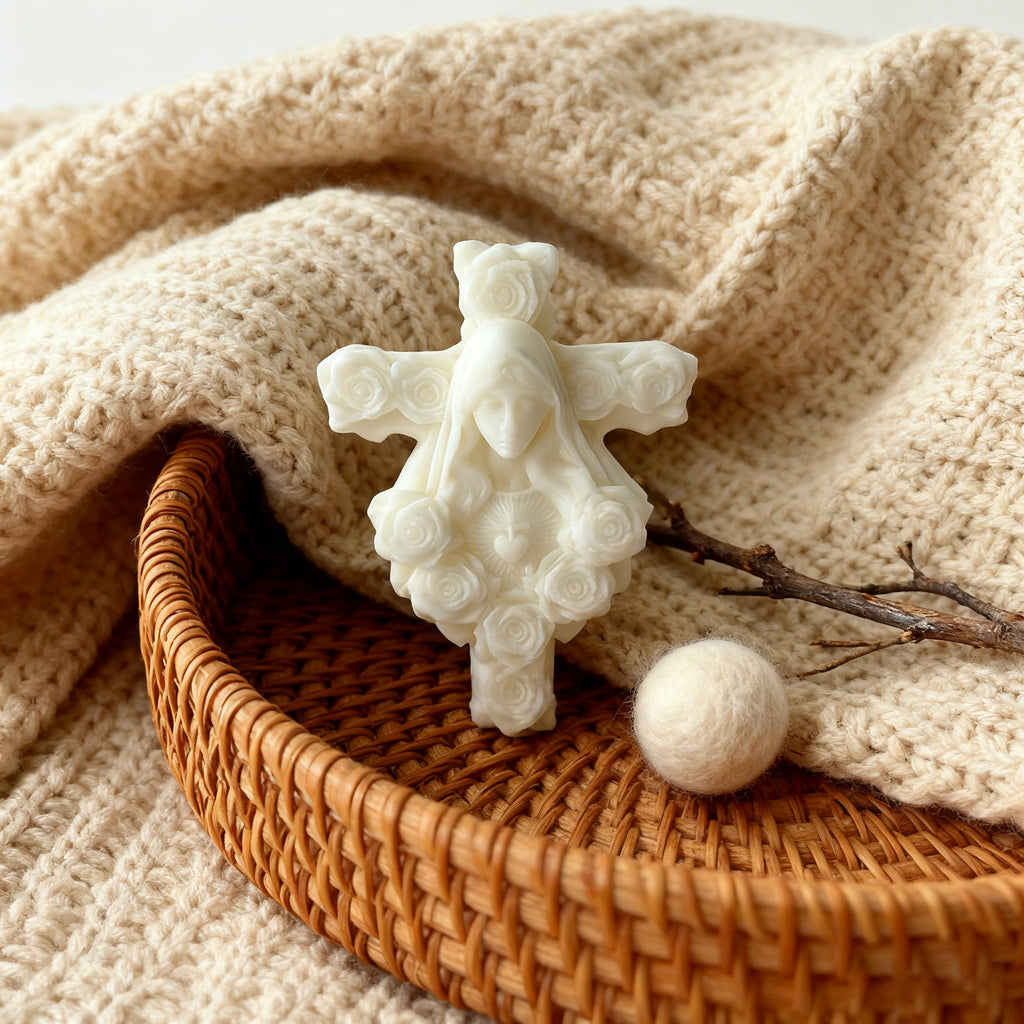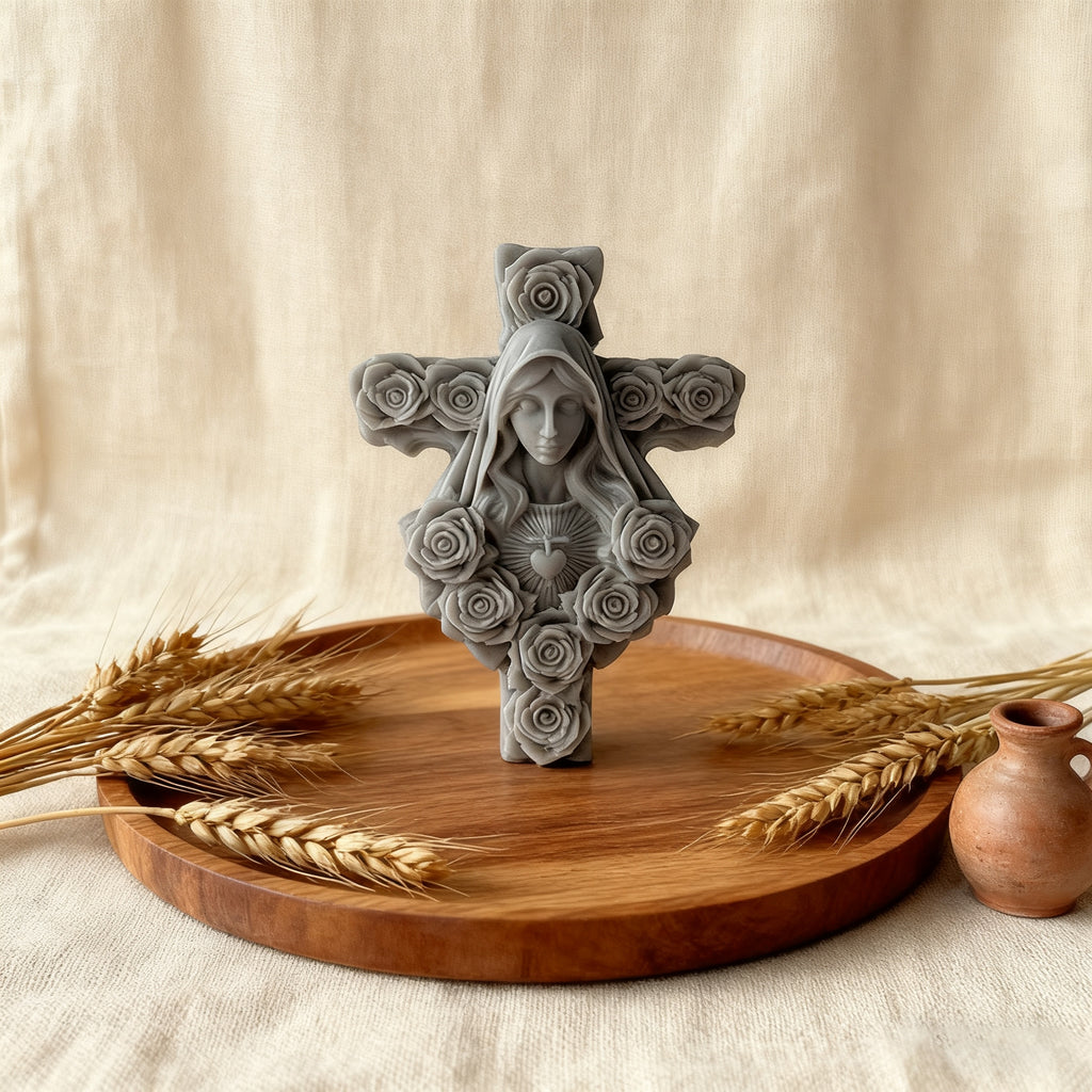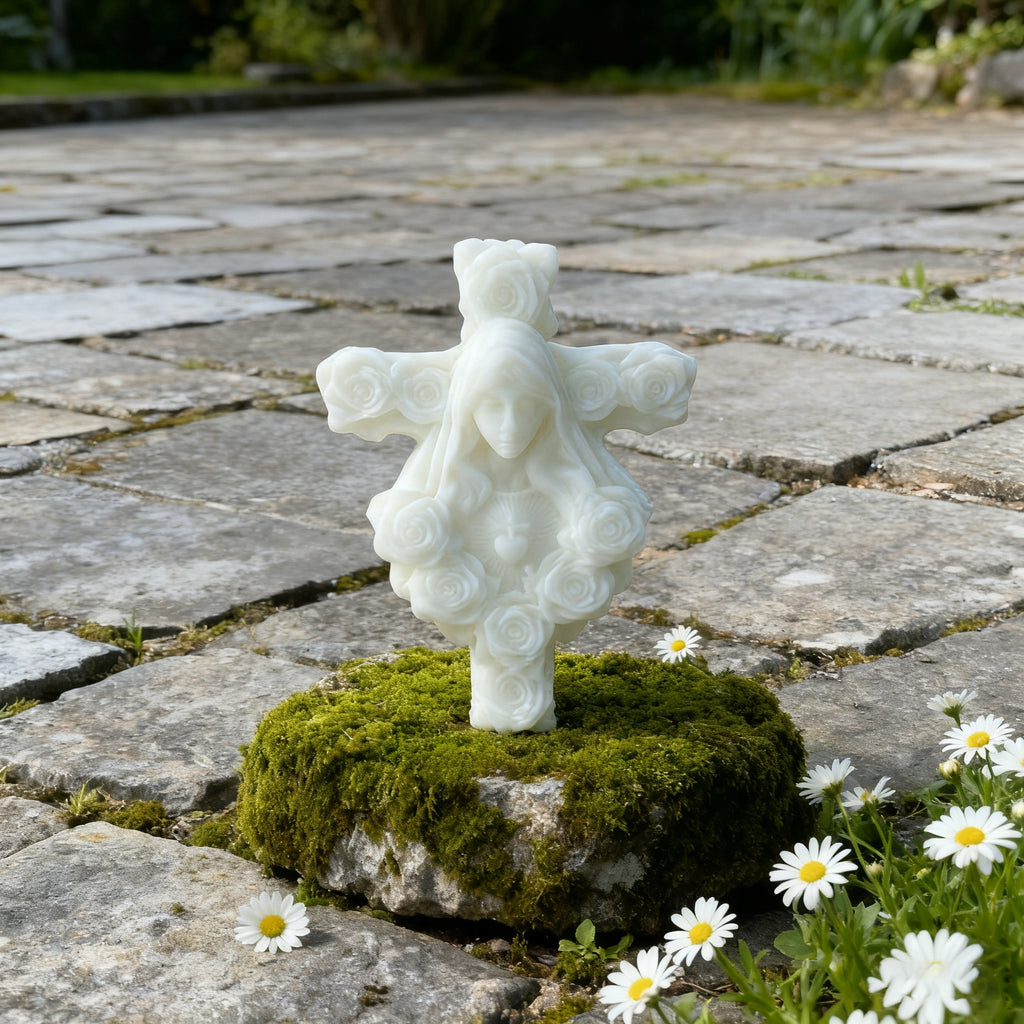 Surrounded by roses, Holy Mary represents purity, grace, and the divine love that brought our Savior into the world. A gentle, calming presence for your prayer corner or bedroom altar.
