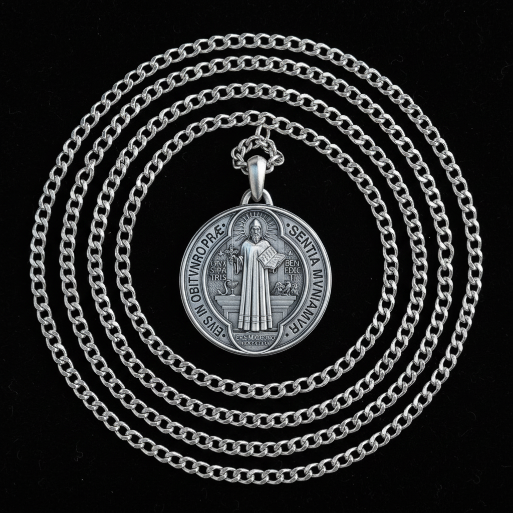 Saint Benedict, the father of Western monasticism and patron of Europe, established a rule of life that shaped Christian civilization for centuries. This medal, one of the oldest and most honored sacramentals in the Church, is known as the “devil-chasing medal” for its power against evil. Pope Leo IX himself wore it, and generations of the faithful have relied on its protection against curses, disease, and spiritual harm. Choosing this medallion is not merely choosing jewelry – it is choosing a guardianship and a faith that has accompanied believers for over a thousand years.