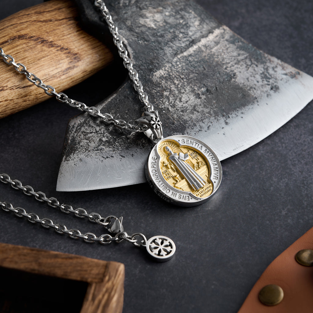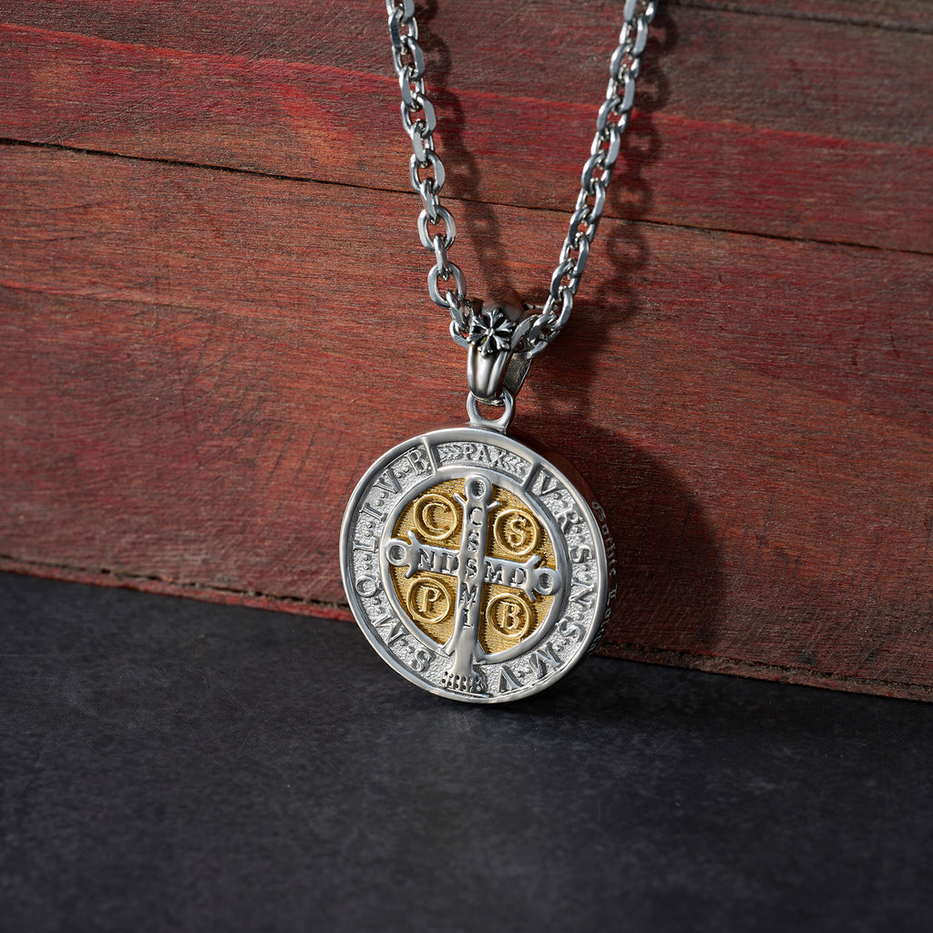 This item is not blessed by a Priest. Please have your Parish Priest bless your beautiful St. Benedict Home Blessing Titanium Steel Pendant。
