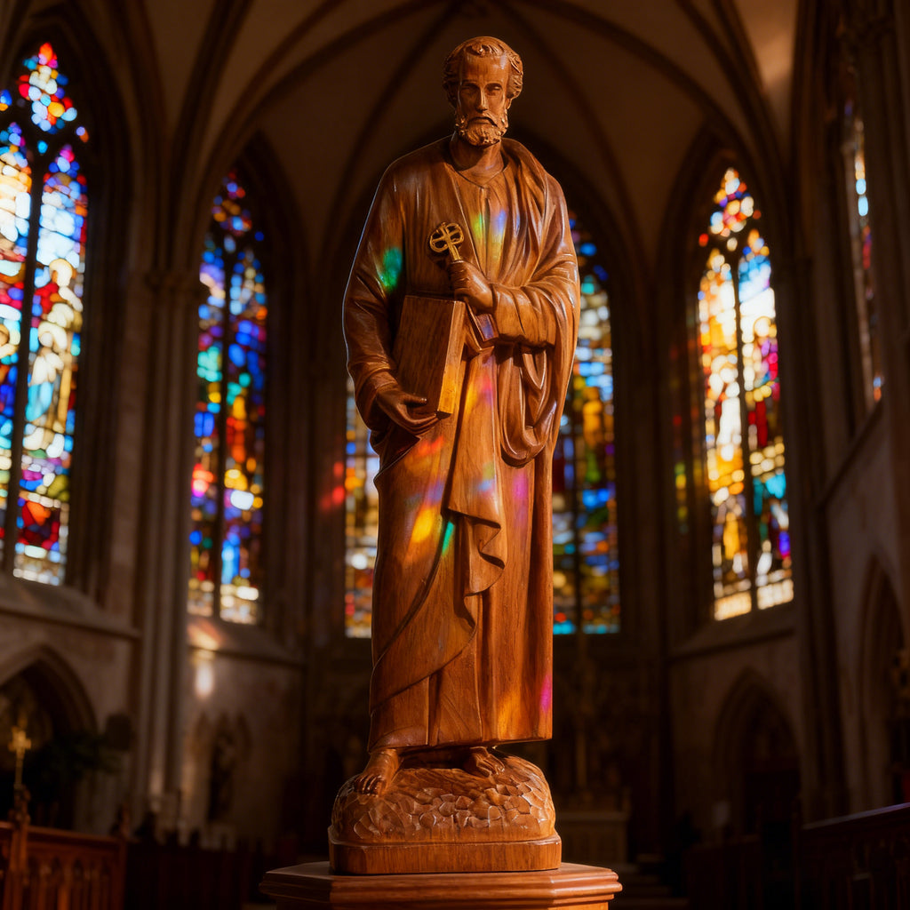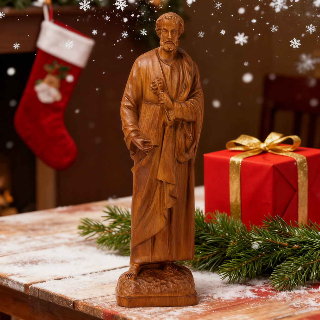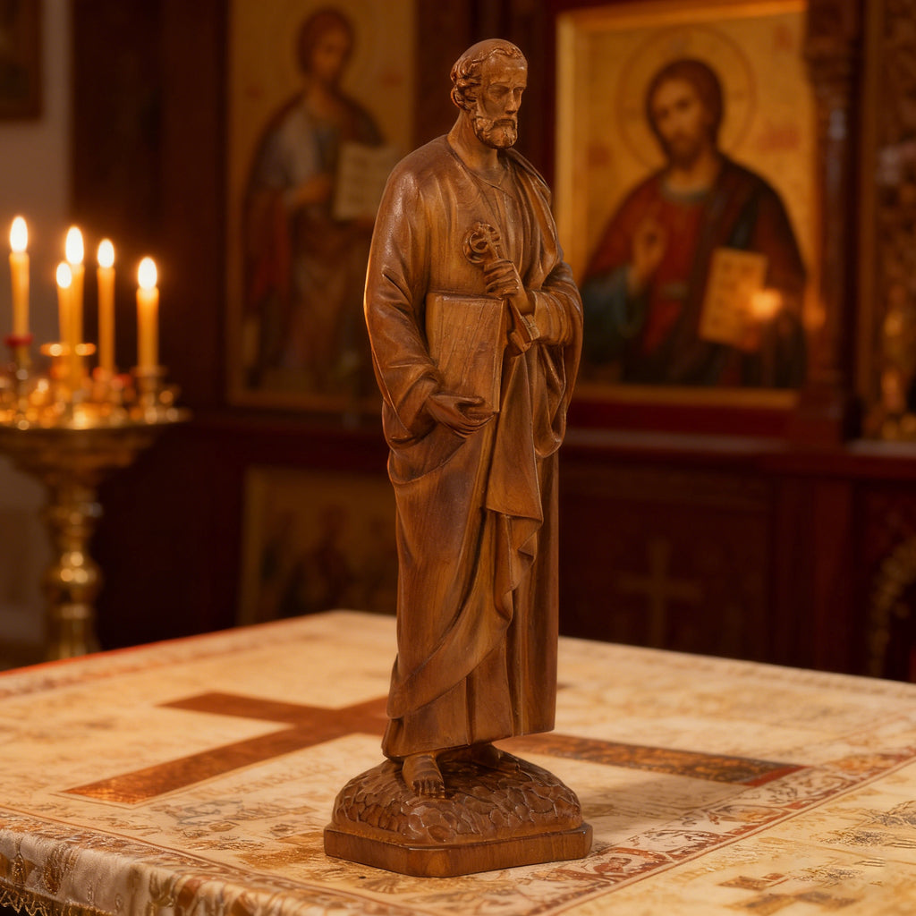 St. Peter Boxwood Sculpture Hand-Carved Apostle Figure | Your Spiritual Companion in Faith & Restoration