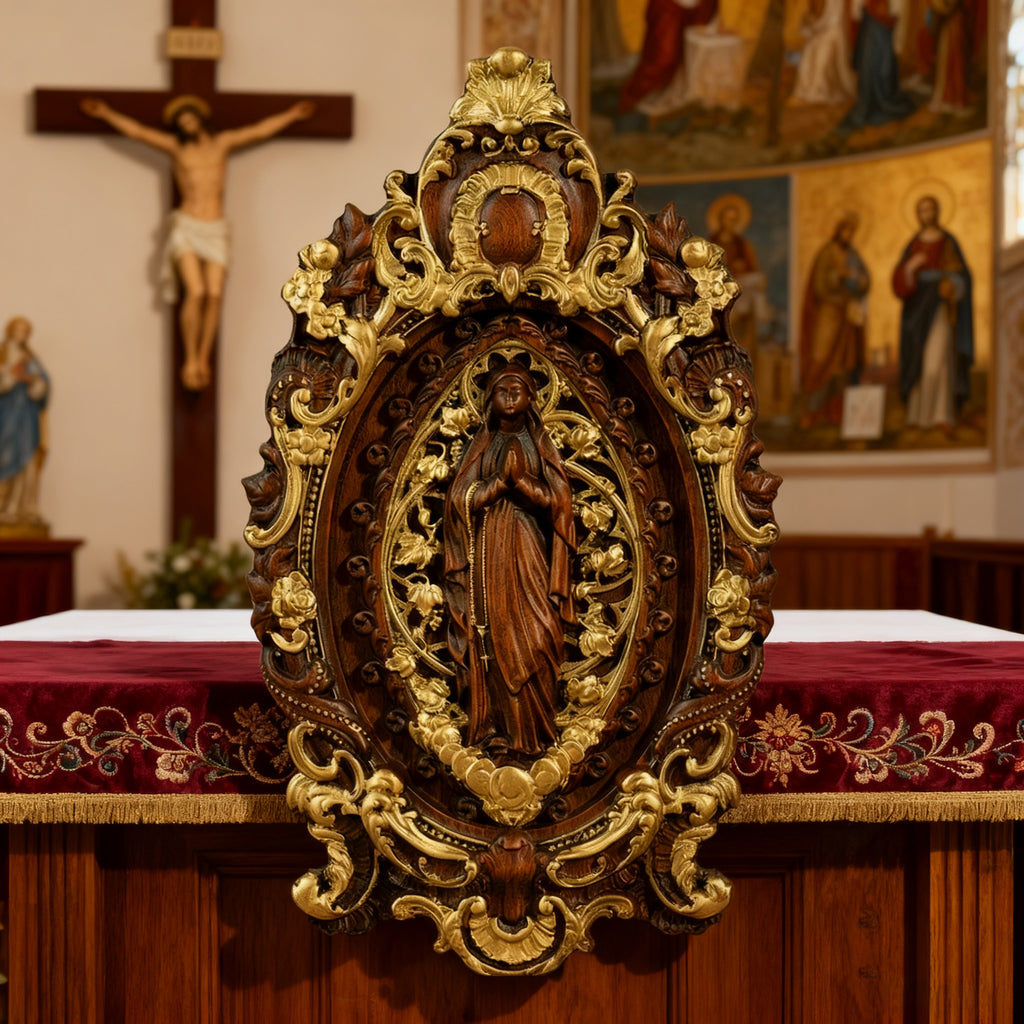 • Hand-Carved Detail: Skilled artisans shape every leaf, curve, and feature—turning wood into a portrait of Mary’s gentle devotion.