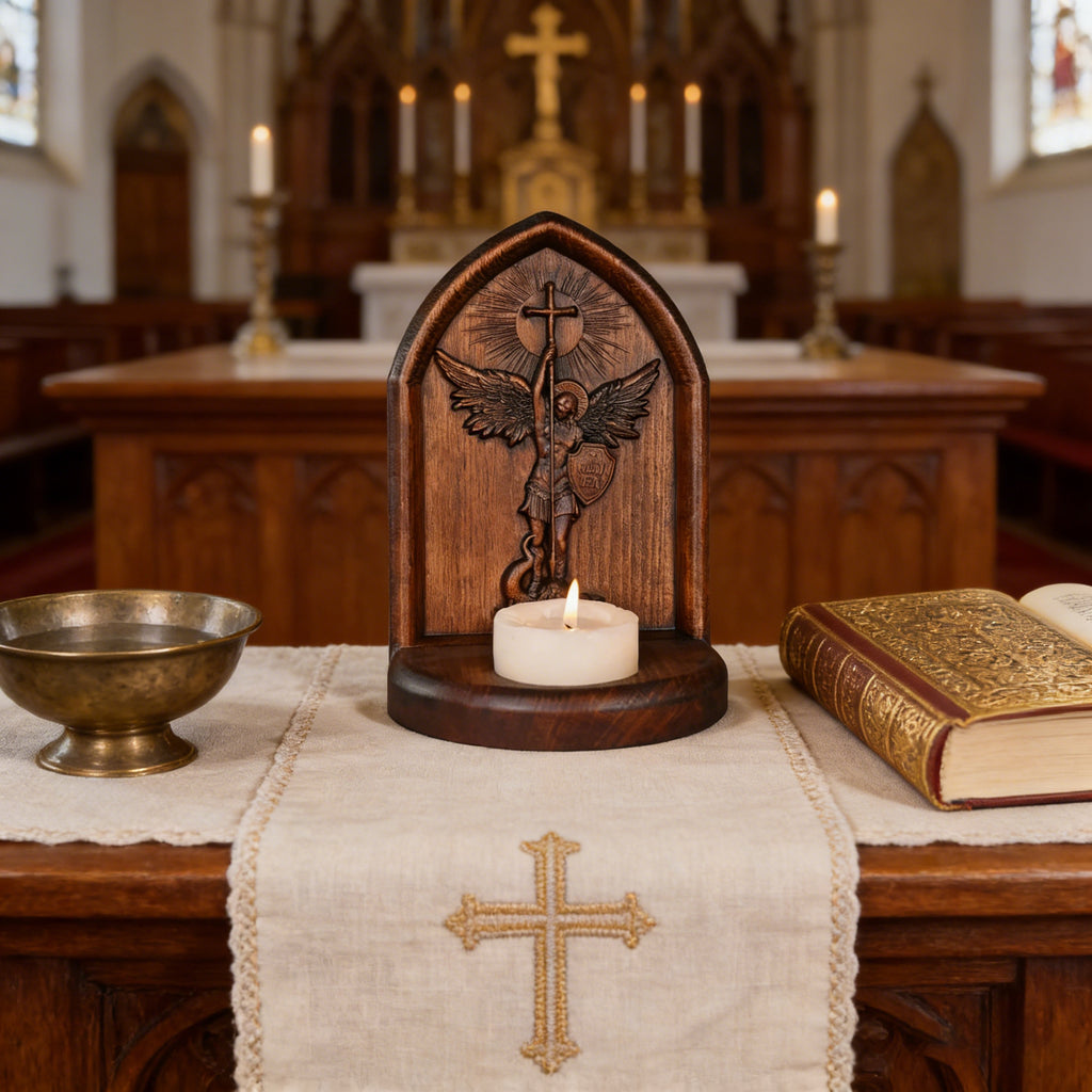 Set this holder on your mantel, prayer nook, or dining table. As the candle burns, the beech wood’s warm grain and Michael’s carved form invite you to pause: to pray, to reflect, to sink into the comfort of faith. It’s not just decor—it’s a living reminder that your home can be a sanctuary.