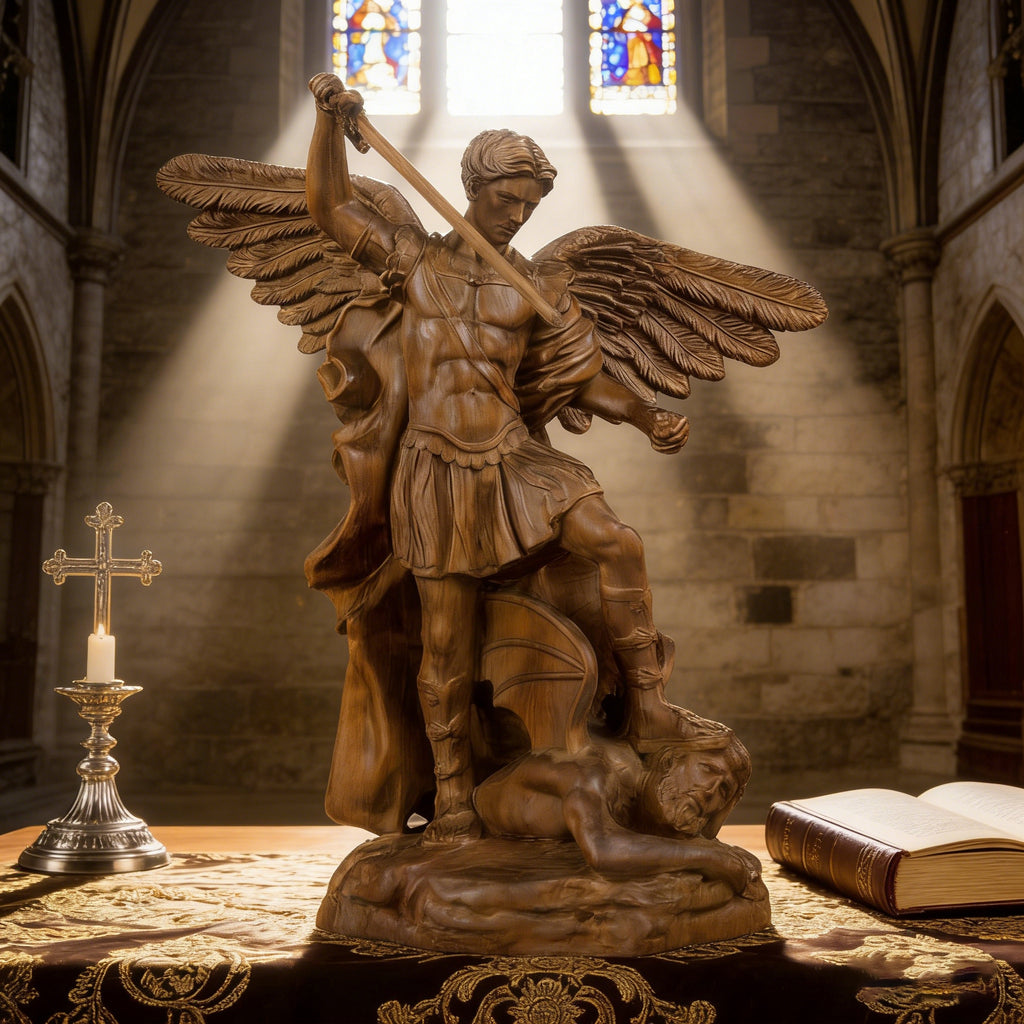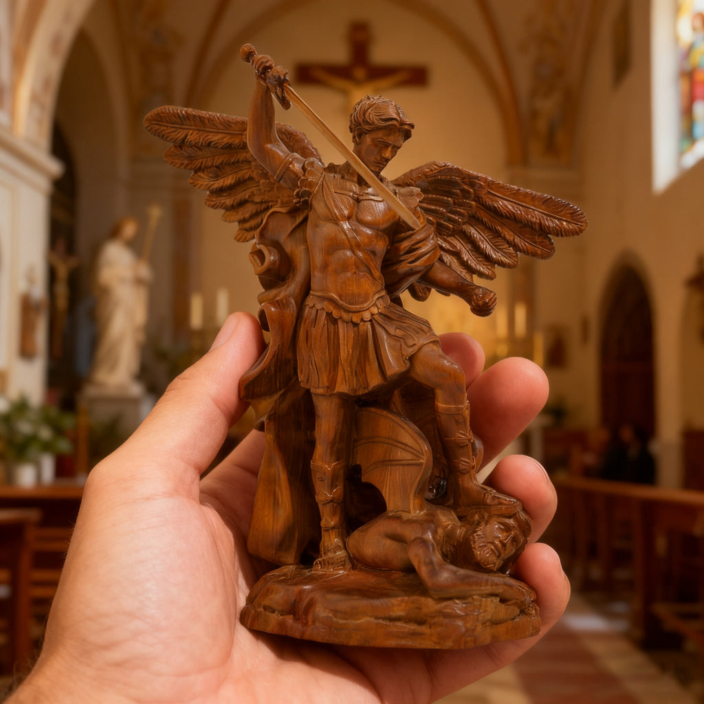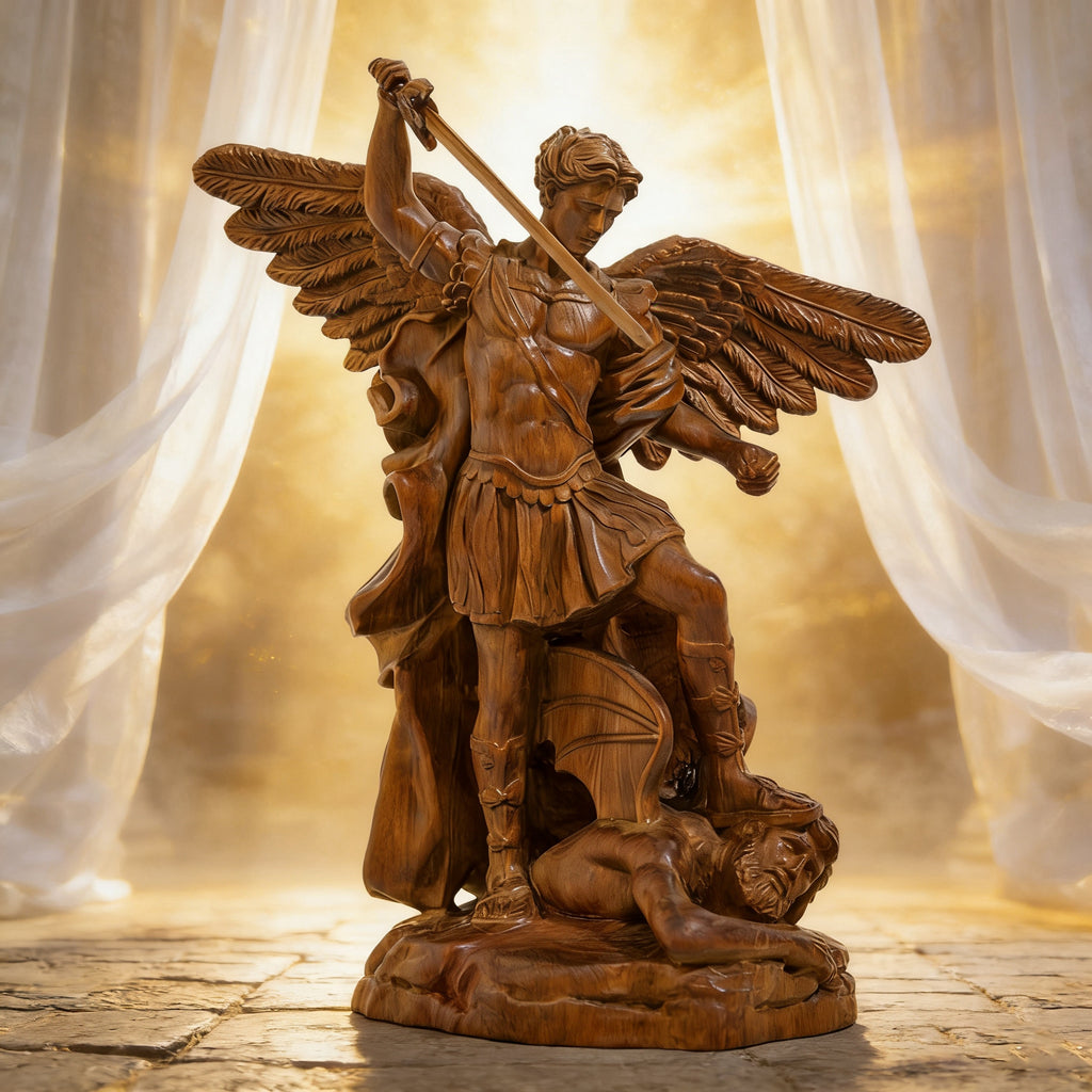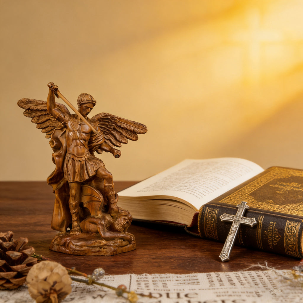 "Heavenly Father, thank You for sending Archangel Michael as our protector. As I place this carving in my home, remind me that Your angels encamp around those who fear You. Protect my family, my home, and all who enter here. In Jesus' name, Amen."