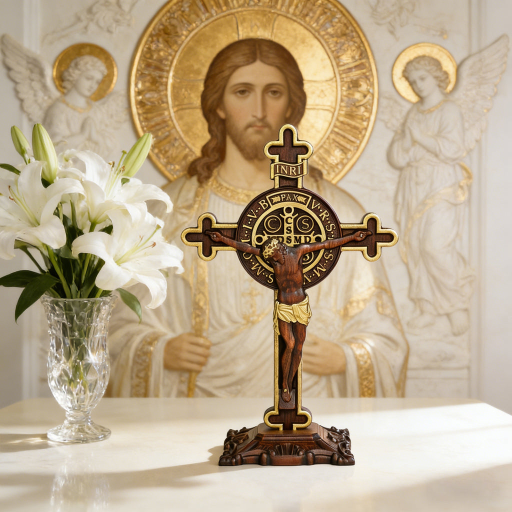 Dual Divine Cross: Christ’s Redemption & St. Benedict’s Protection