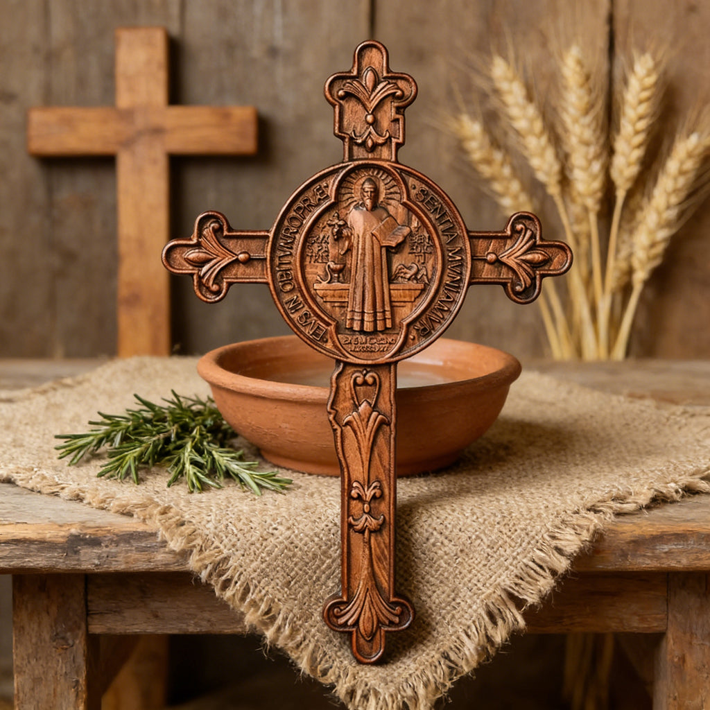 For centuries, Christians have sought the intercession of Saint Benedict against spiritual evils, making this side a source of comfort and protection in times of trial.