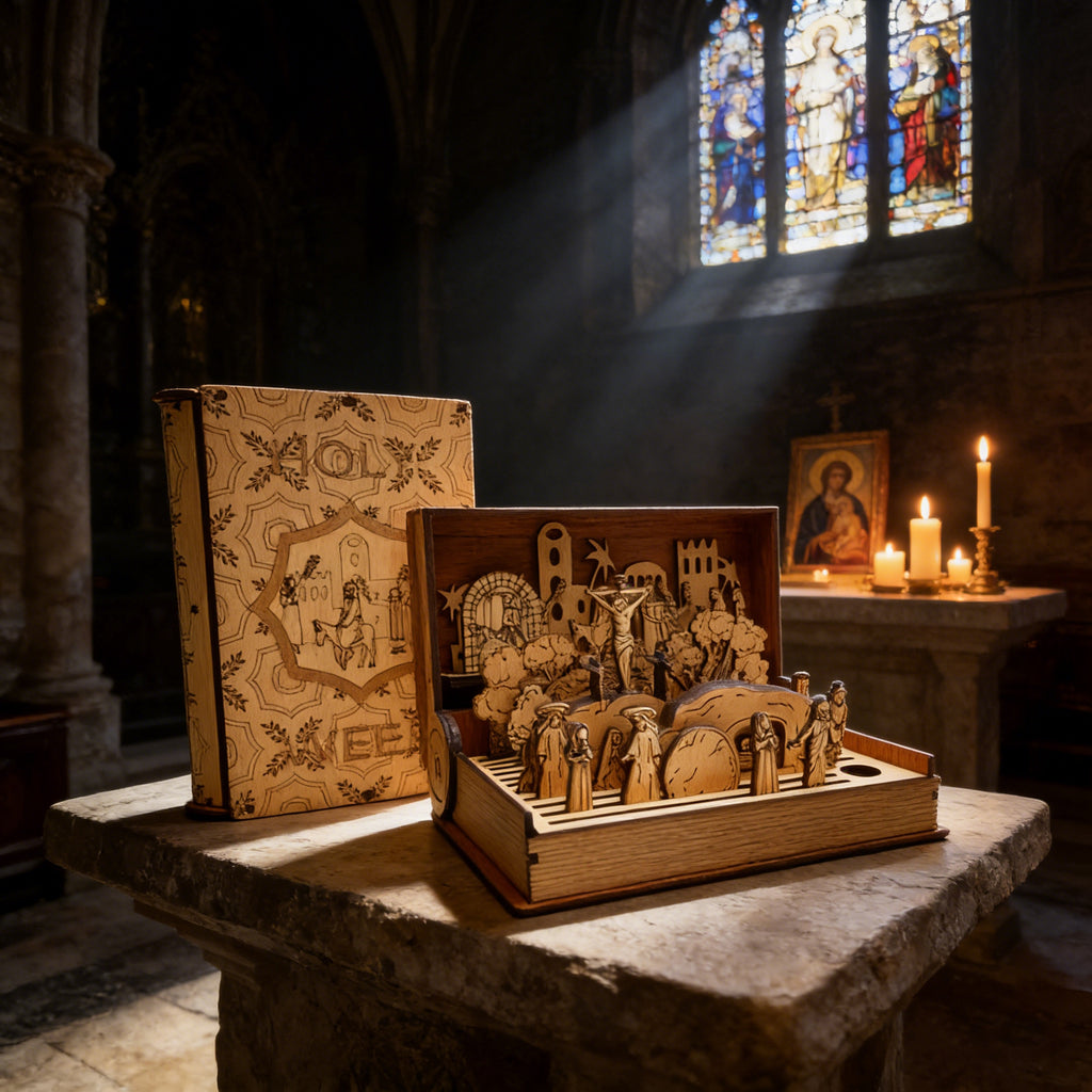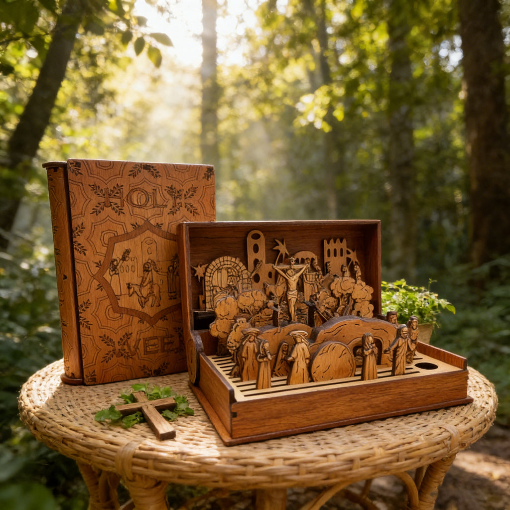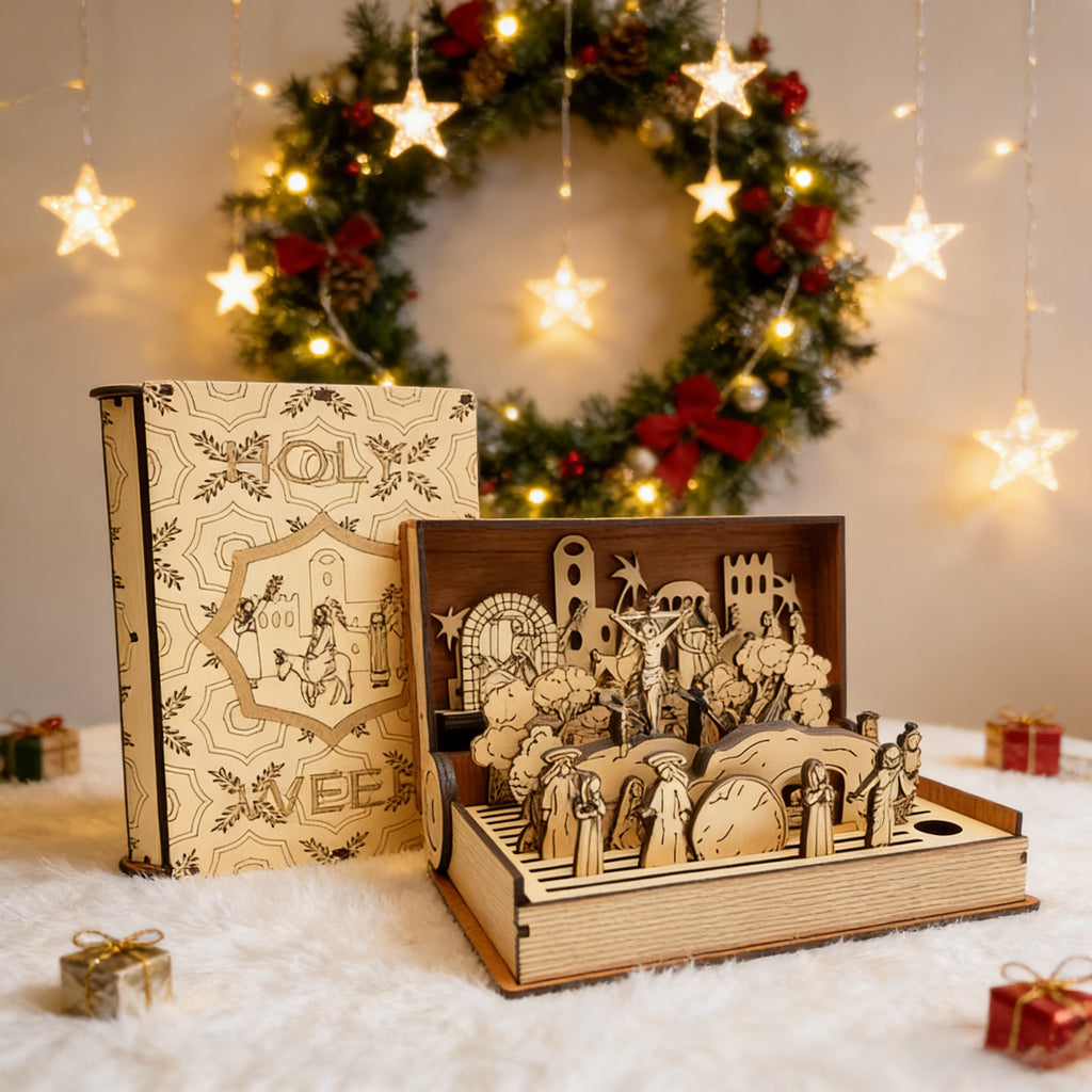 This wooden handicraft, resembling a book, is an immediate attention - grabber. The cover might conceal mysterious religious elements, just waiting to be discovered. Once opened, a three - dimensional religious scene unfolds like a scroll, instantly immersing you in a rich religious ambiance. What's more, you have the freedom to DIY its color, giving it a personalized touch right from the start.