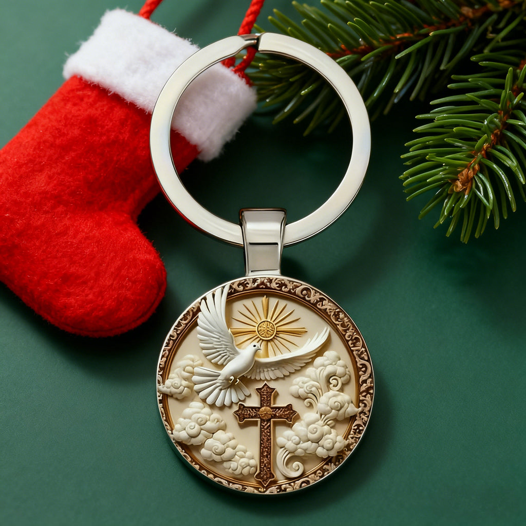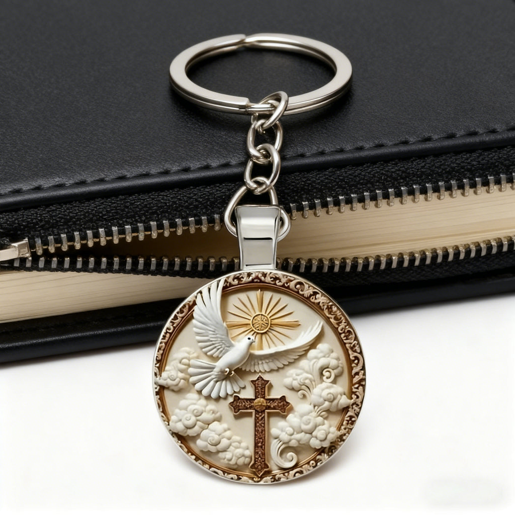 "Divine Blessing" Silver Dove & Cross Keychain – A Symbol of Faith, Peace, and God's Grace