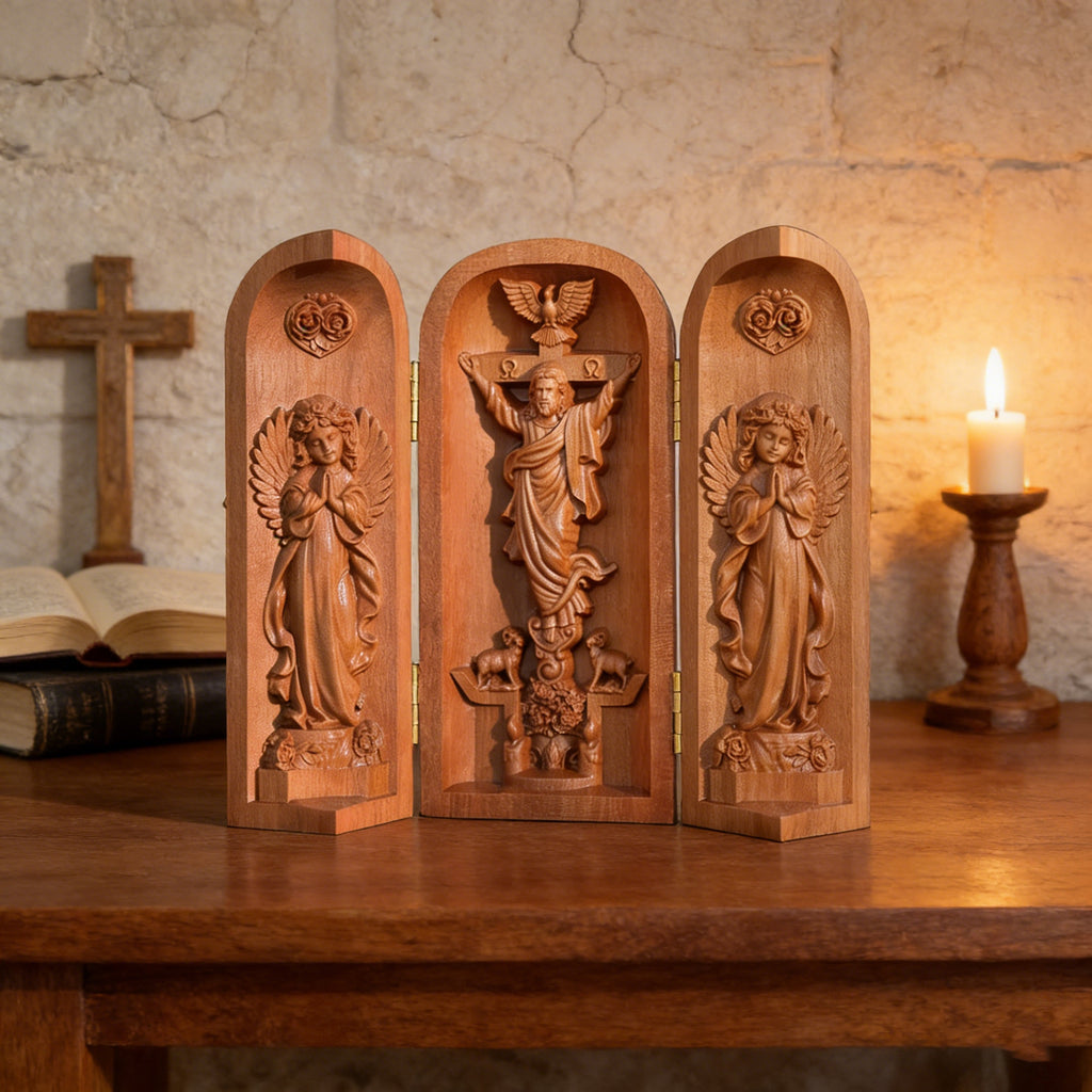 Artistry: Hand-Carved. This is not mass production. Each stroke of the artisan's tool is an act of devotion, making every piece a unique testament to skilled, prayerful craftsmanship.