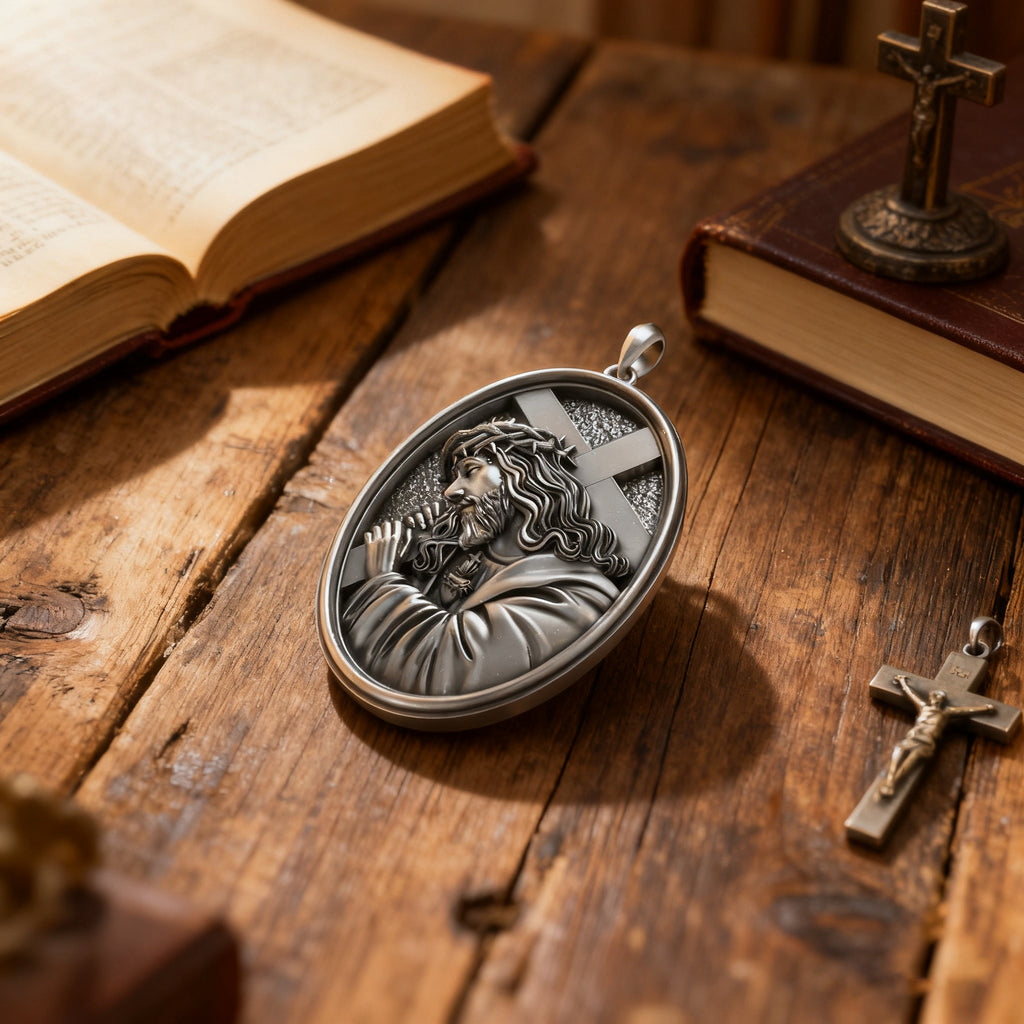 Forged from solid sterling silver, the pendant glows with a soft, sacred sheen. Every edge is polished with reverence, echoing the enduring strength of faith — pure, unwavering, and everlasting.