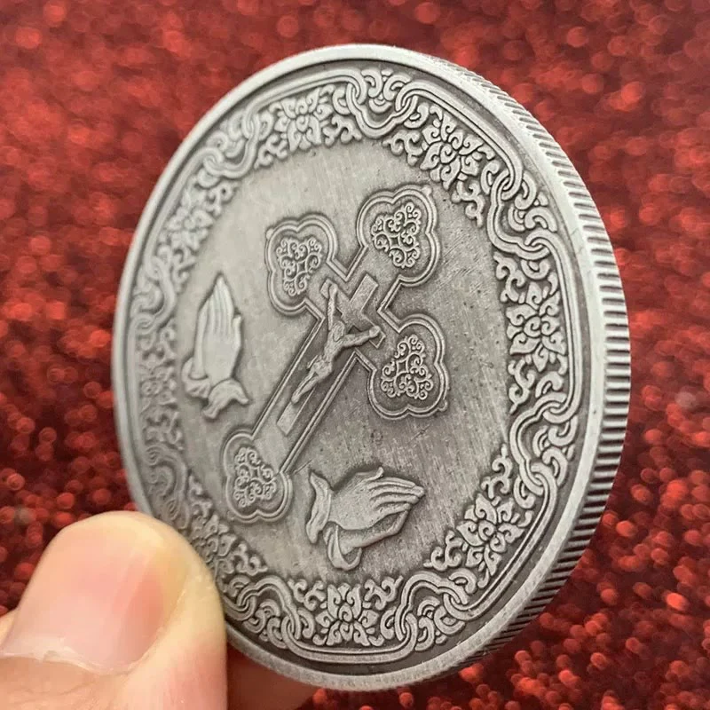 This detailed alloy coin wraps the quiet sorrow of Christ’s crown of thorns and the hope of the cross into a portable, meaningful piece—perfect for carrying faith close.