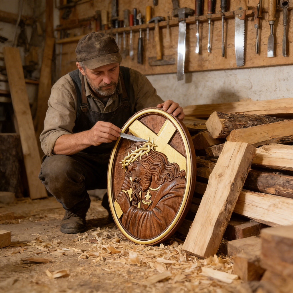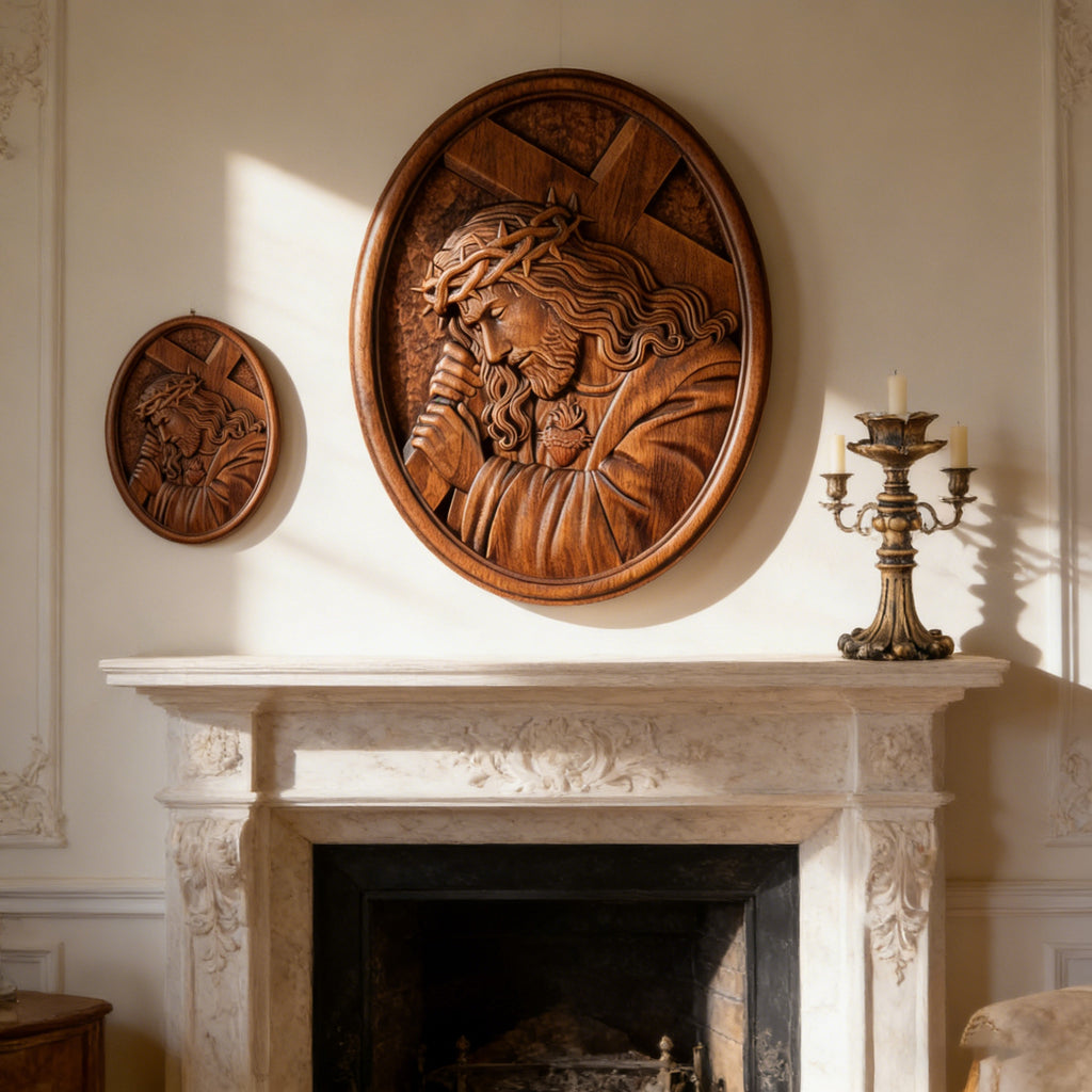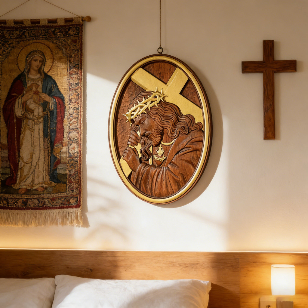 • Craftsmanship: Hand-carved + hand-painted—every thorn, fold of the robe, and detail of the heart is shaped with reverence (each piece is unique).