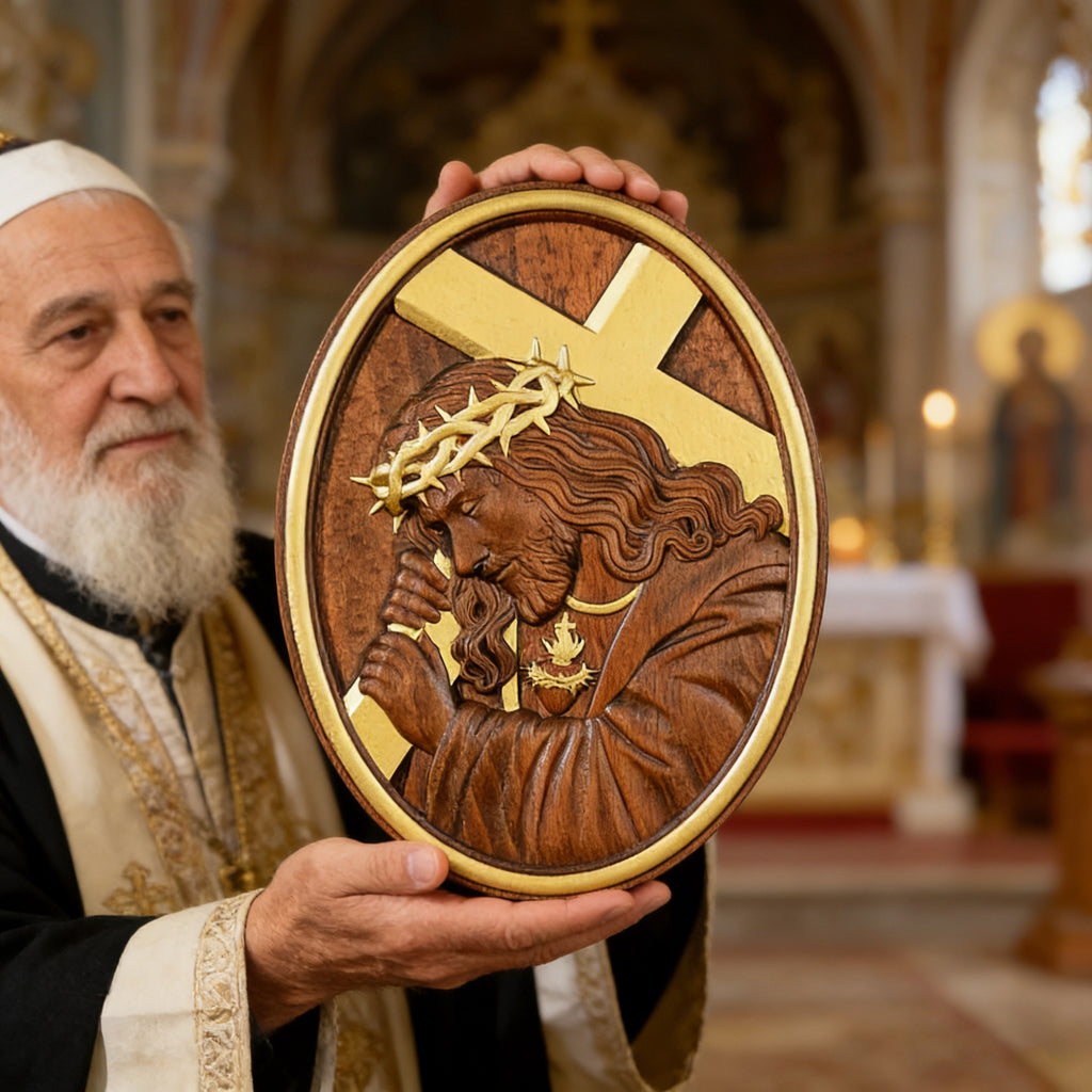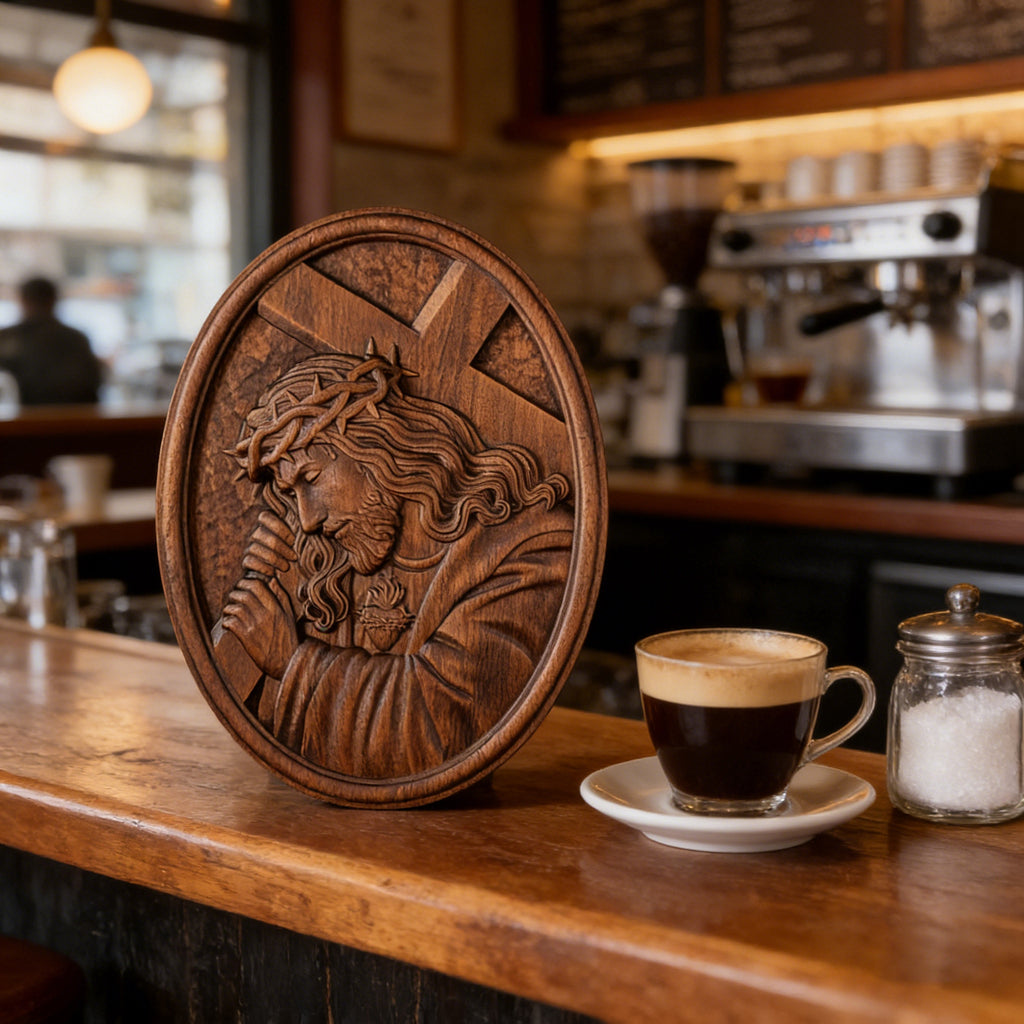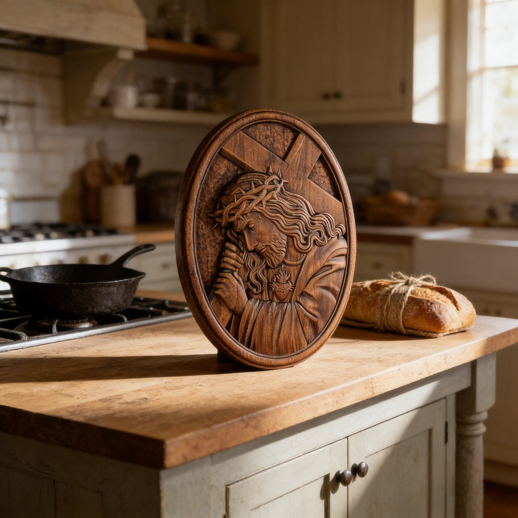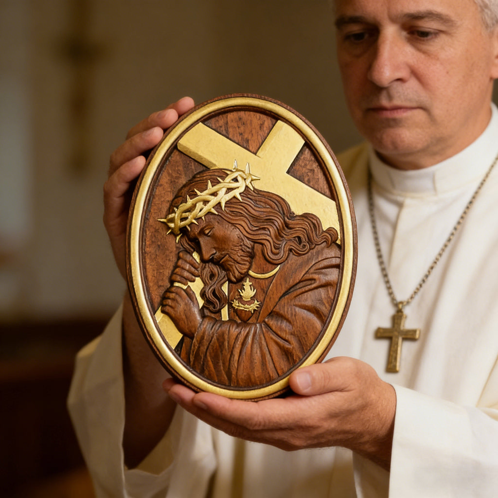 • Craftsmanship: Hand-carved + hand-painted—every thorn, fold of the robe, and detail of the heart is shaped with reverence (each piece is unique).