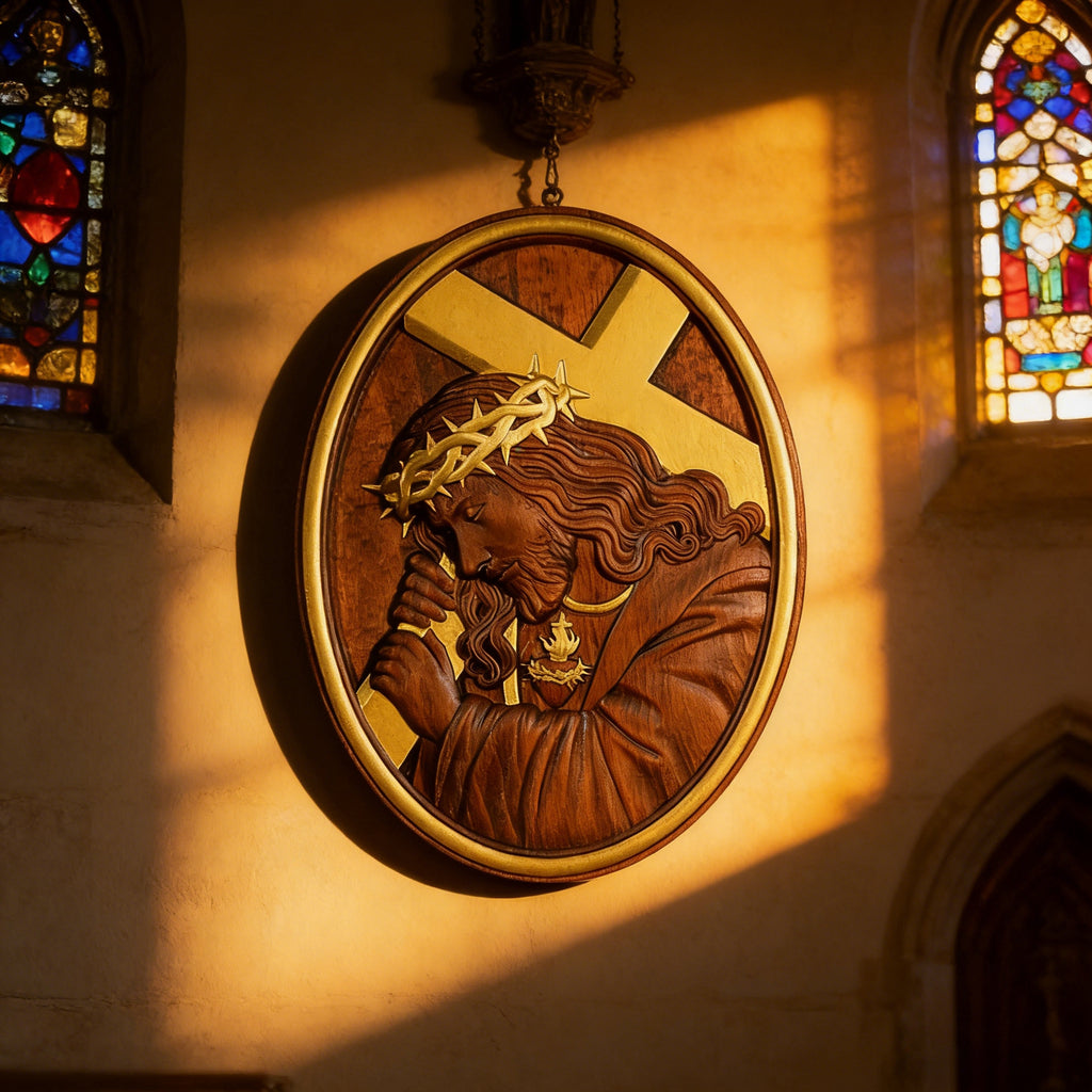 • Sacred Heart: The pierced, flaming heart symbolizes His unending love—the wound and thorns echo His suffering, while the flame represents the “furnace of divine love” that endured all for us.