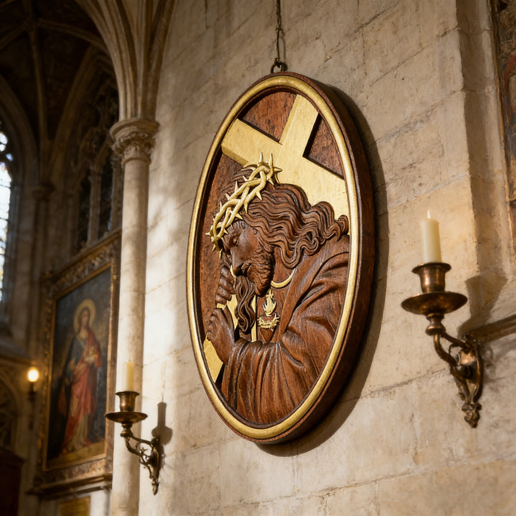 This hand-carved wood piece captures the profound symbolism of Jesus’ crown of thorns and Sacred Heart—wrapping His sacrifice, love, and redemption into a striking, durable artwork for your space. Crafted entirely from solid wood, it’s both a devotional symbol and a stunning decorative accent. For inquiries, reach out to our Facebook page to request a video inspection!