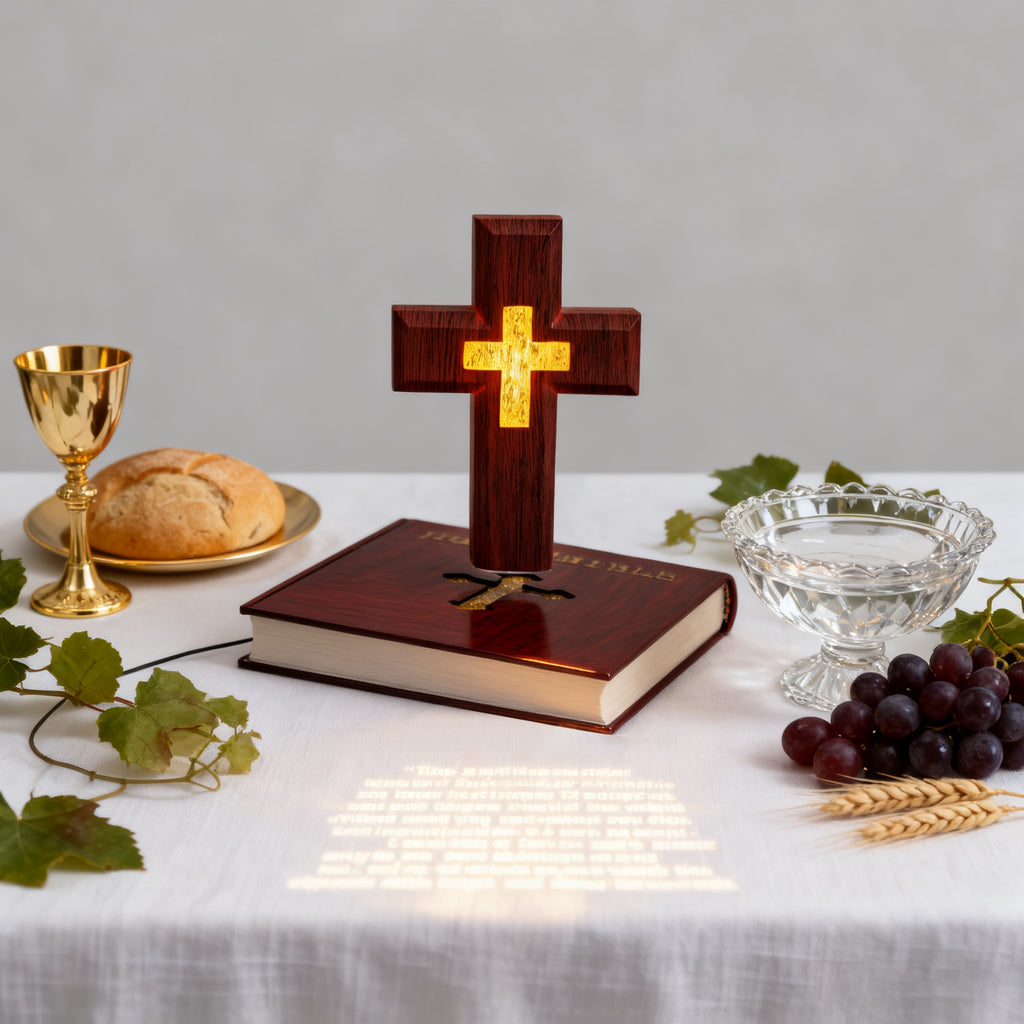 Floating Cross Bible LED Lamp: Suspended Faith, Illuminated Grace