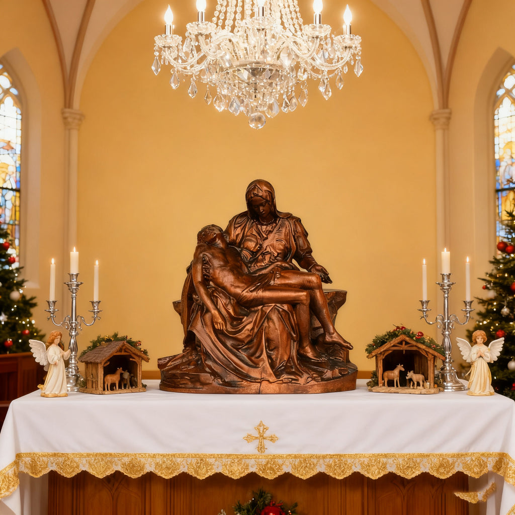 A tangible expression of divine love and maternal grace, inviting contemplation of the sacred bond that redeems humanity.
