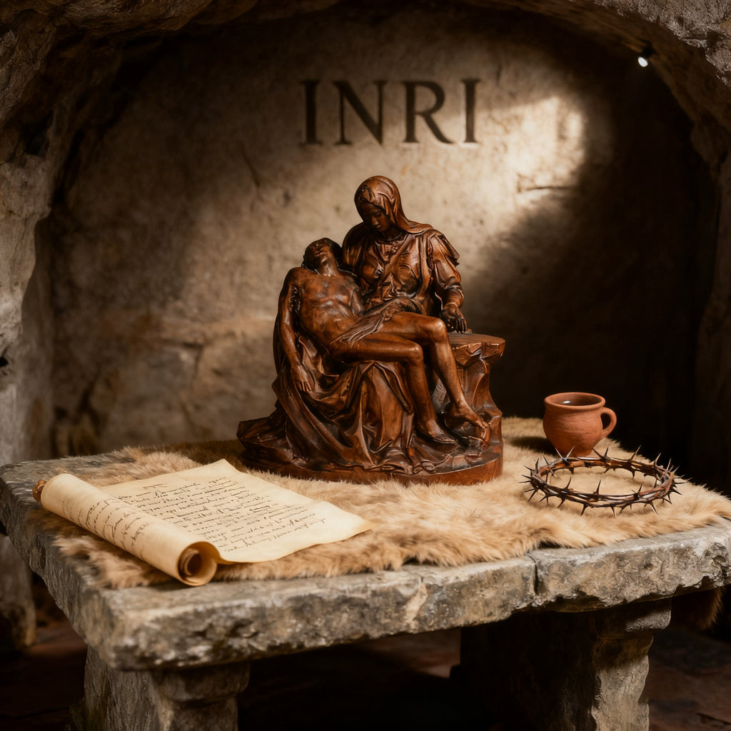 🕊️ The Virgin Mary – Her youthful countenance, as Michelangelo envisioned, symbolizes eternal purity and sublime faith. She embodies the believer’s heart: accepting God’s will with courage and offering unconditional love as a beacon of hope in our daily walk.