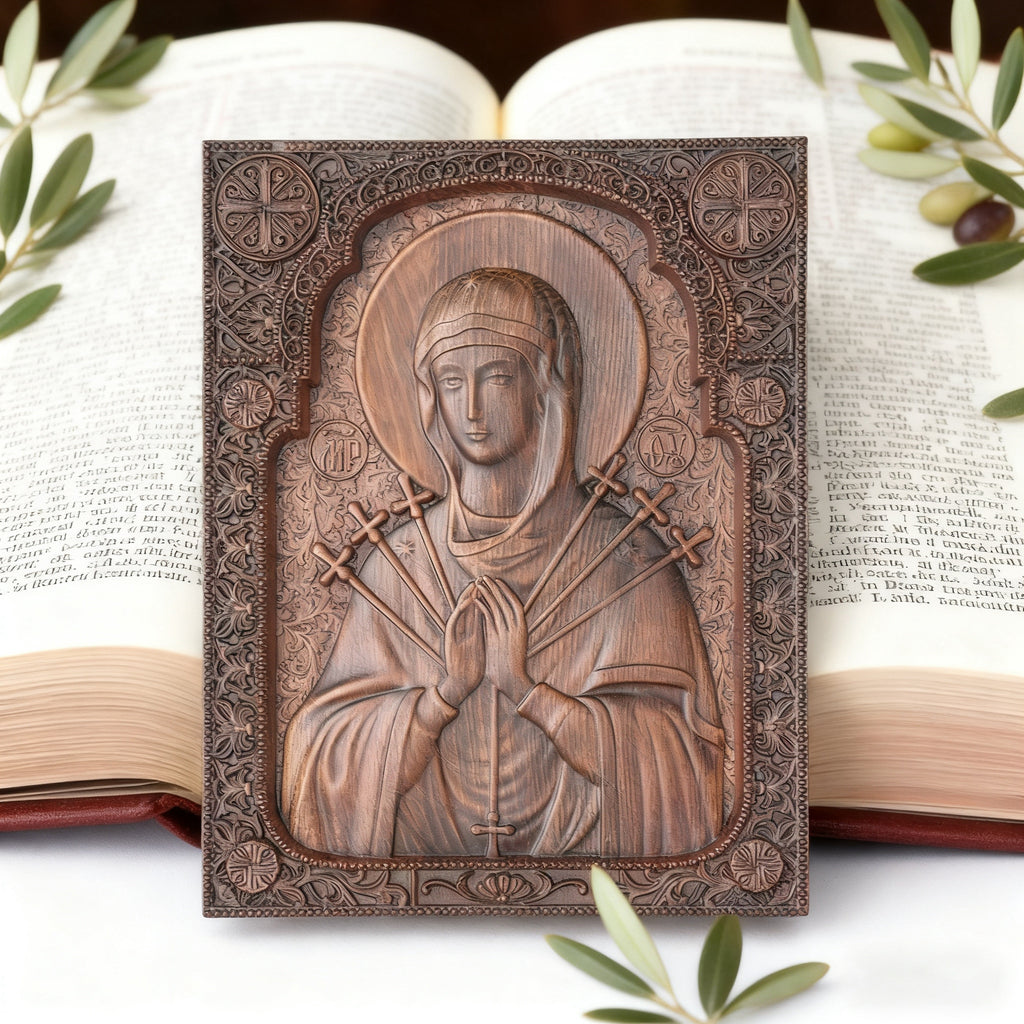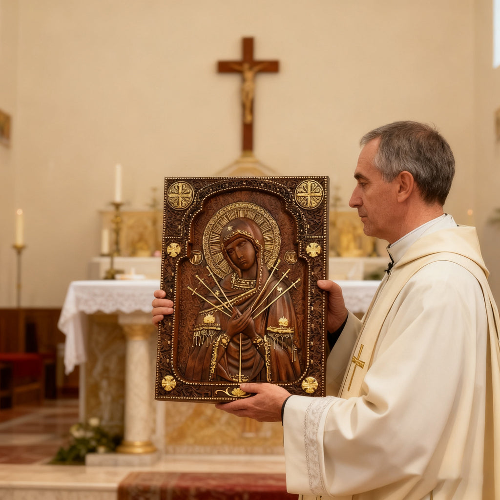 This hand-carved devotional is more than an object—it is a means of grace, a tool for prayer, and a testament to Our Lady’s enduring presence. Hang it in your prayer corner, family room, or chapel to foster a home where faith is lived and sorrows are sanctified.