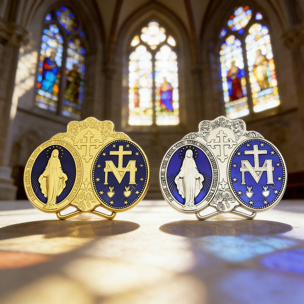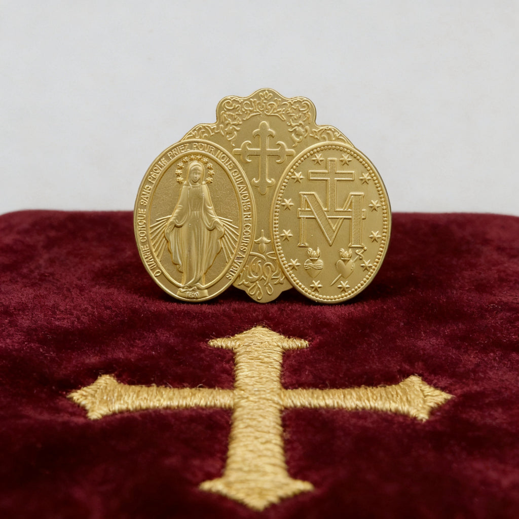 Originating from the tender apparitions of the Blessed Virgin Mary to Saint Catherine Labouré in 1830, the Miraculous Medal is not merely a piece of jewelry. It is a sacramental—a sacred sign instituted by the Church that disposes the soul to receive grace. It is Our Lady’s own design, given as a tangible pledge of her maternal care and the abundant graces flowing from the Heart of her Son.
