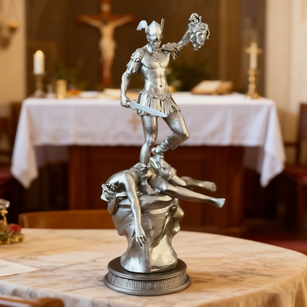 • Design: Meticulously sculpted to capture every bold detail: Perseus in his winged helmet & armor, triumphantly holding Medusa’s severed head; her lifeless form at his feet (scaled to echo her cursed nature).