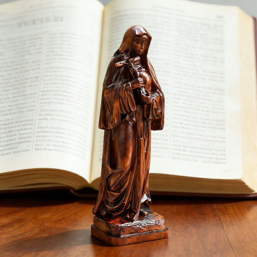 Whether placed in a prayer nook, church, or workspace, this sculpture stirs piety at every glance. During quiet prayers, her serene presence offers solace; in moments of doubt, the faith she represents provides direction. As an emotional anchor, it lets believers feel divine companionship in daily life. It adorns spaces while making religious emotions—love and hope—tangibly real, preserving the warm legacy of faith.