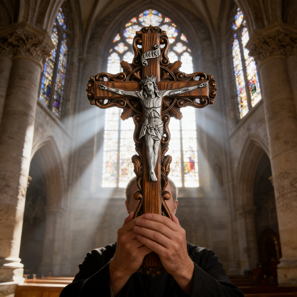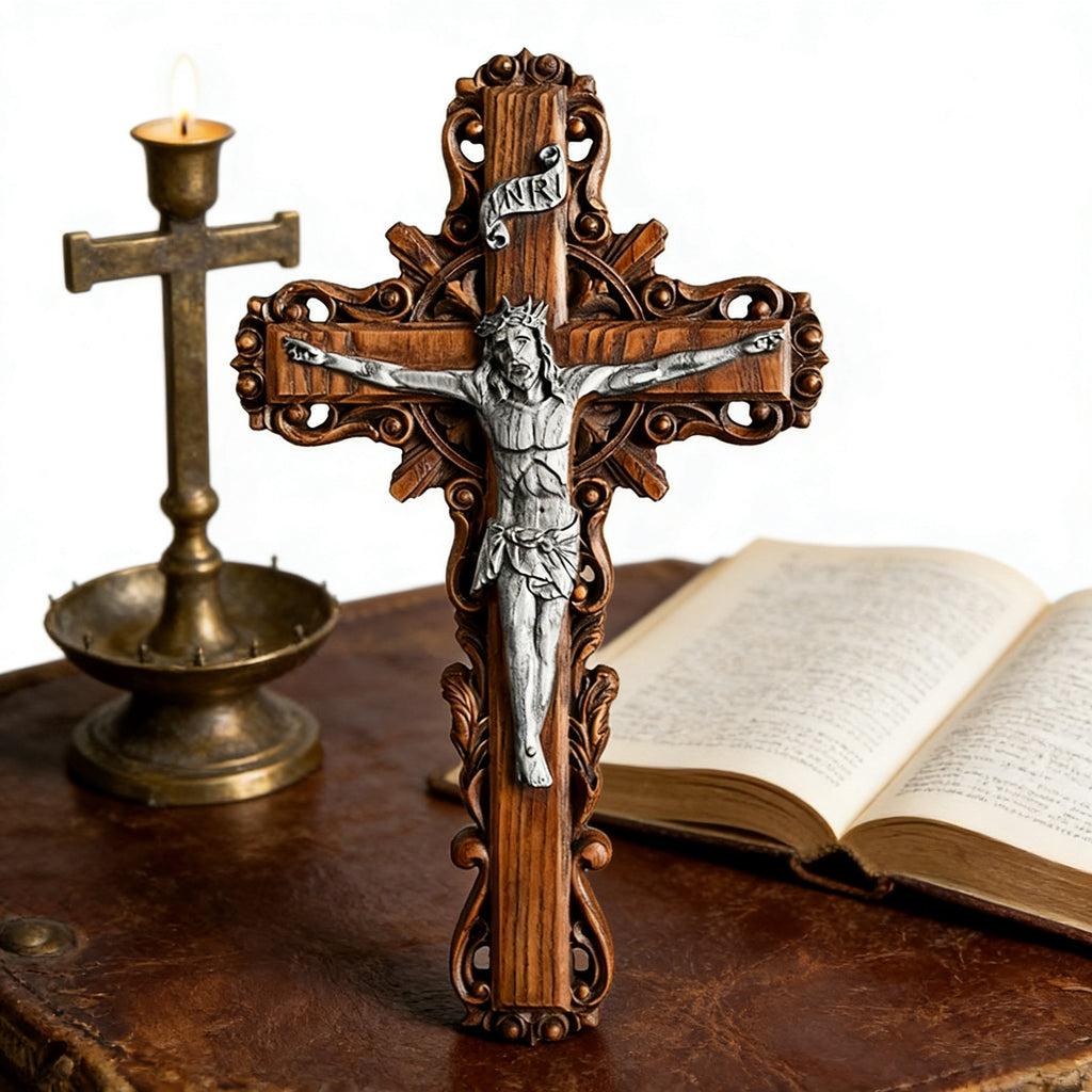 Silver painted version Ash wood Crucifix ,Jesus Christ, wooden Cross gift of love