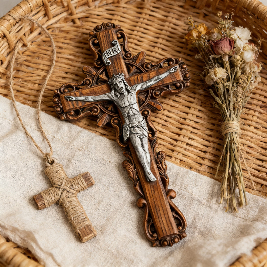 RELIGIOUS ART WOOD CARVING: This is a stunning 12,5" Wooden Crucifix carved from solid wood. This realistic wall crucifix wood carving is breathtaking and is a rustic wooden crucifix perfect for hanging in any room in your home or church. It is an  ideal Christian gift, Baptismal Gift, Christian Wedding gift or a very special upcoming Christmas gift.