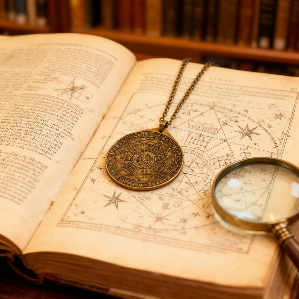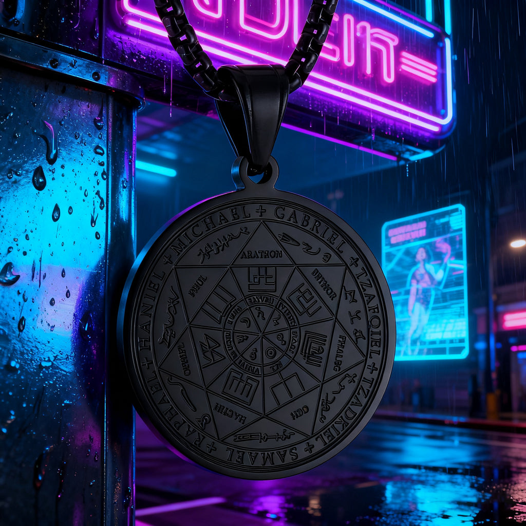 Vintage Titanium Seven Archangel's Seal Pendant - Amulet against evil eyes, curses, spells