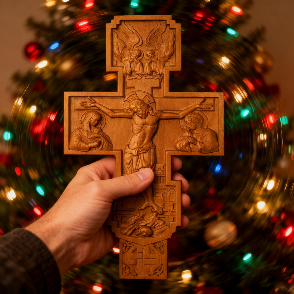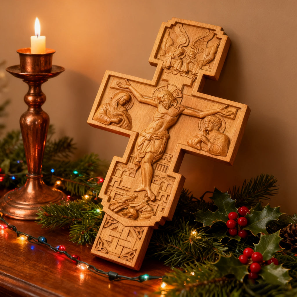Hand-Carved Beechwood Religious Cross: A Sacred Artistic Testament to Christian Faith