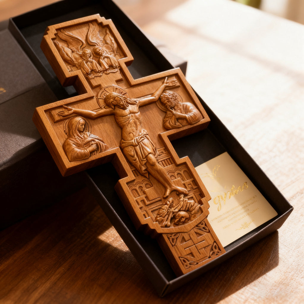 In the Christian tradition, the cross is more than a symbol—it is a "living faith". This handcrafted beechwood cross carries sacred thoughts through the hands of artisans and conveys God's love through natural materials. May it take its place in your space as a daily reminder of faith—just as Jesus' sacrifice is never forgotten, your journey of faith will grow ever stronger and more glorious because of this sacred artifact.